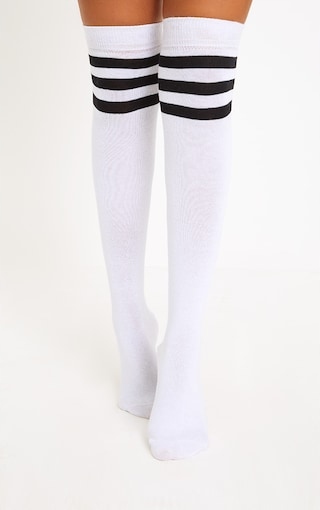 Zakolanówki bawełniane Intenso w paski BIAŁE PL