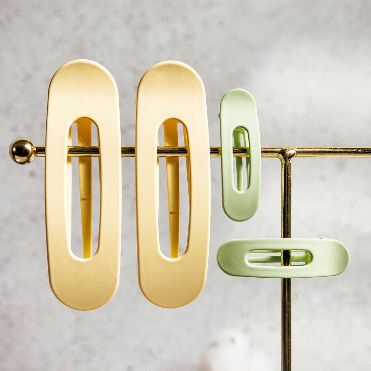 Ищете аксессуар, который не только сохранит прическу, но и добавит ей шарма? Запонки AVA – стильное предложение. Овальная форма в нежных пастельных оттенках желтого и зеленого прекрасно сочетается с естественными тонами волос, а прочная застежка гарантирует устойчивость в течение дня.