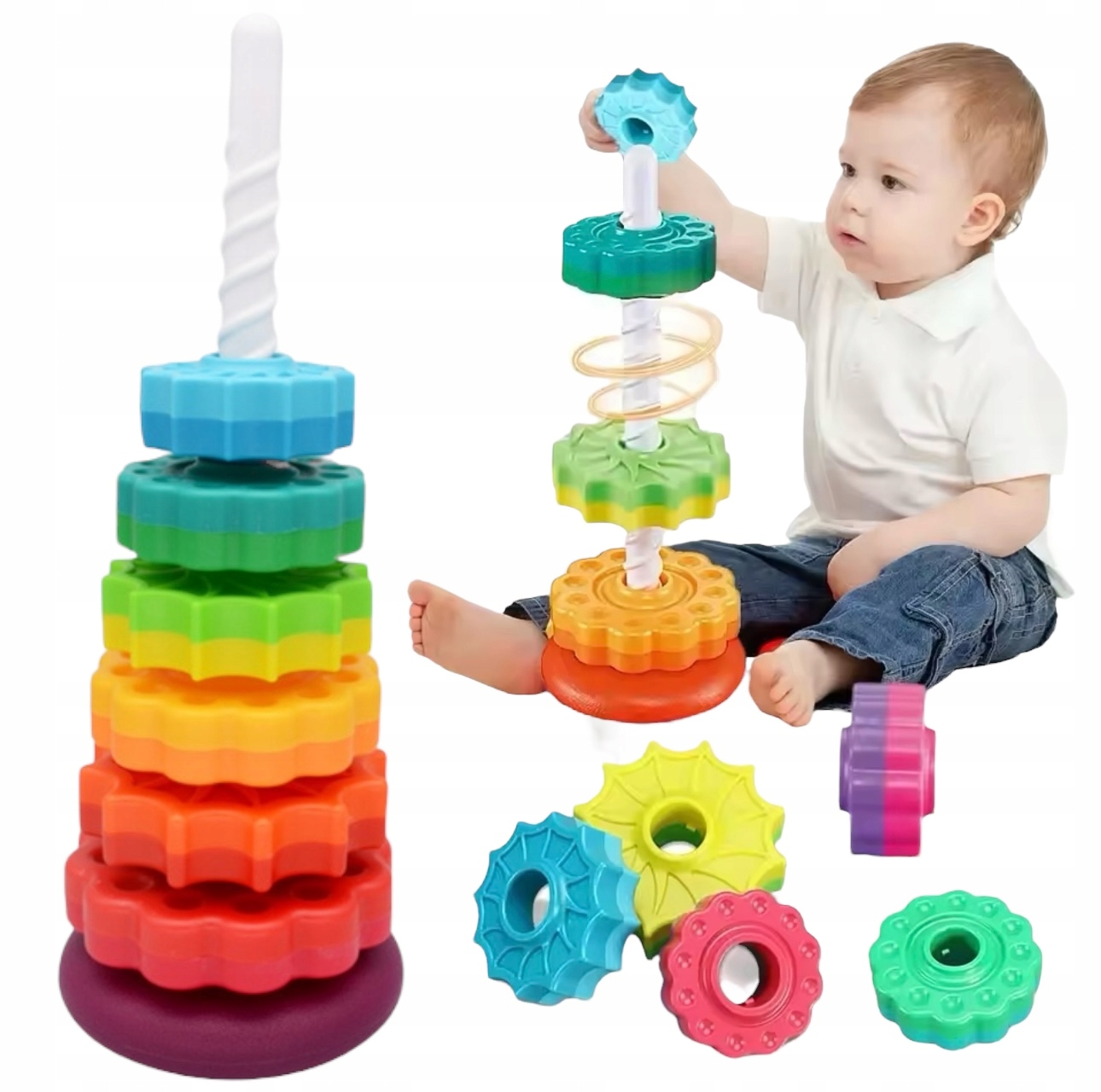 ZAKRĘCONA PIRAMIDA OBROTOWA TĘCZA KOLOROWA SPIRALA KREATYWNA DUŻA PIRAMIDKA