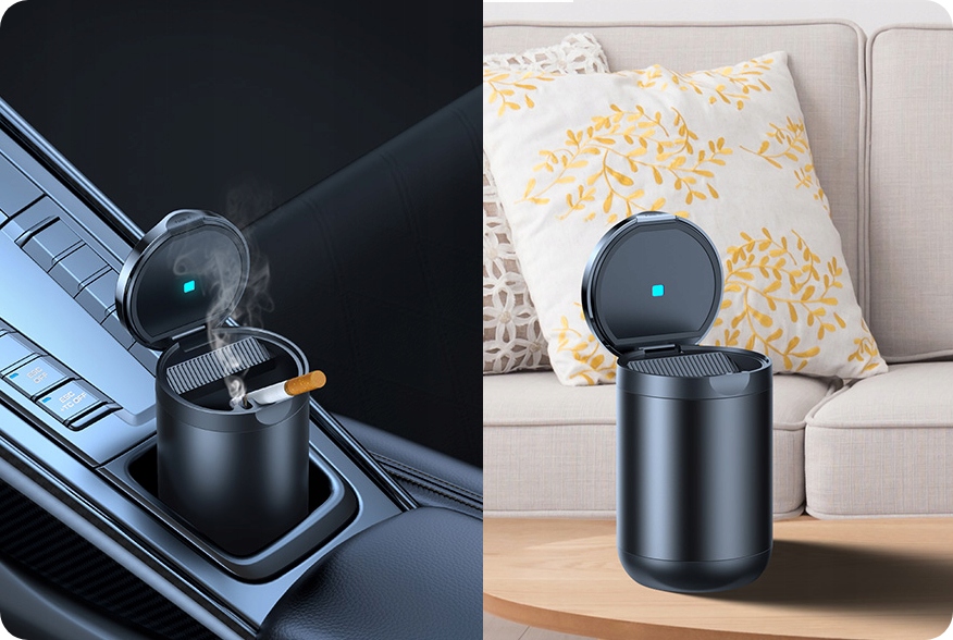 - Интеллектуальное светодиодное освещение: Автоматическая светодиодная подсветка включается при открытии крышки, что облегчает использование пепельницы в ночное время и обеспечивает лучшую видимость.