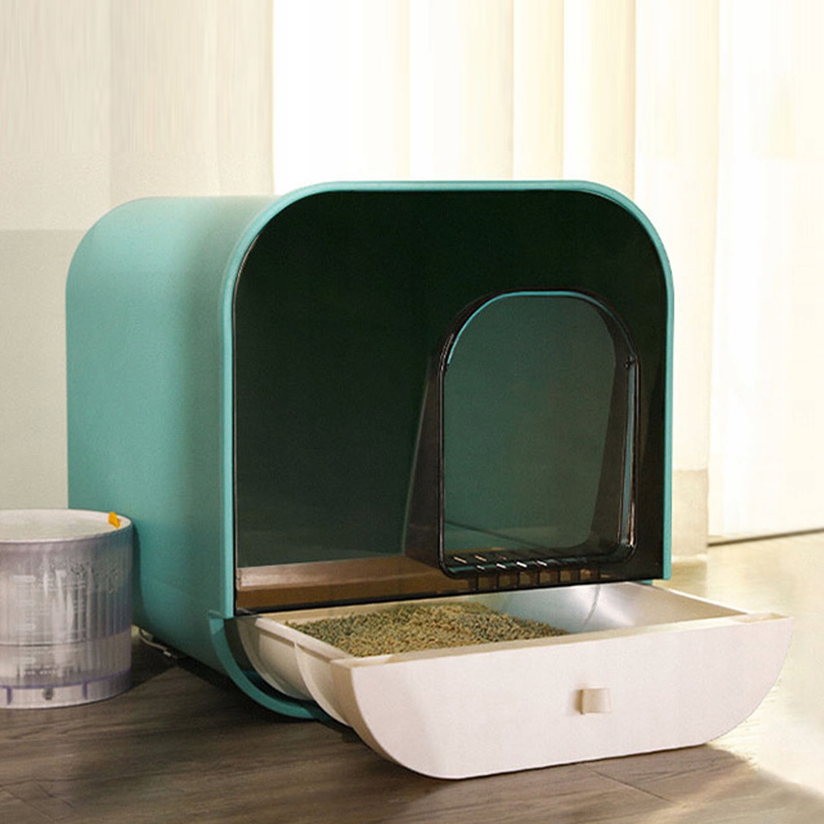 2. Удобный двойной дизайн входа: коробка имеет двойной способ раскачивания для кошек, чтобы свободно получить доступ к туалету. Вход оснащен пустой педалью, которая покрывает мульчу, когда кошка выпрыгивает, эффективно предотвращая разбрызгивание мусора и сохраняя пол и аккуратность.