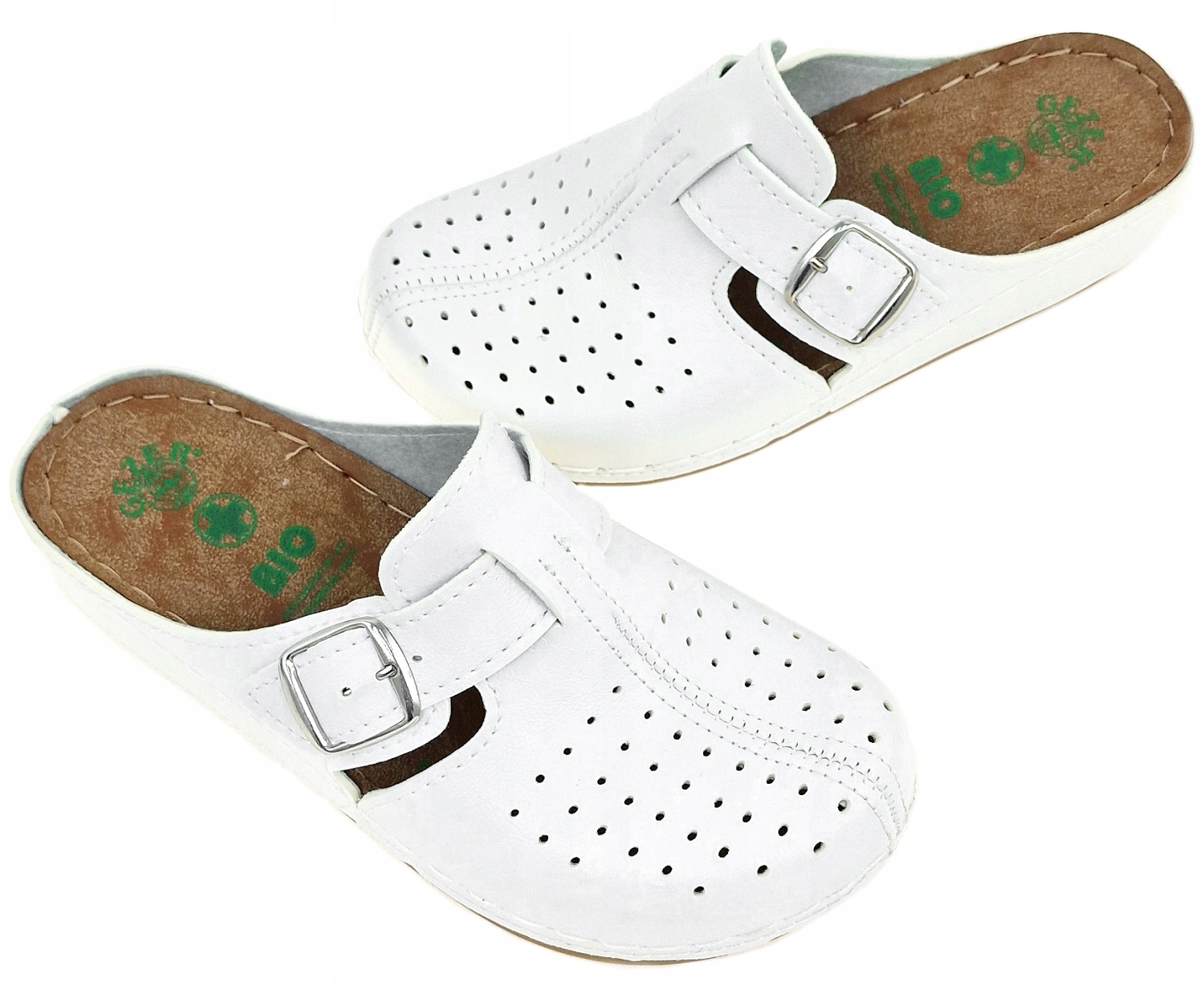 Закриті медичні сабо тапочки біла пряжка s.36