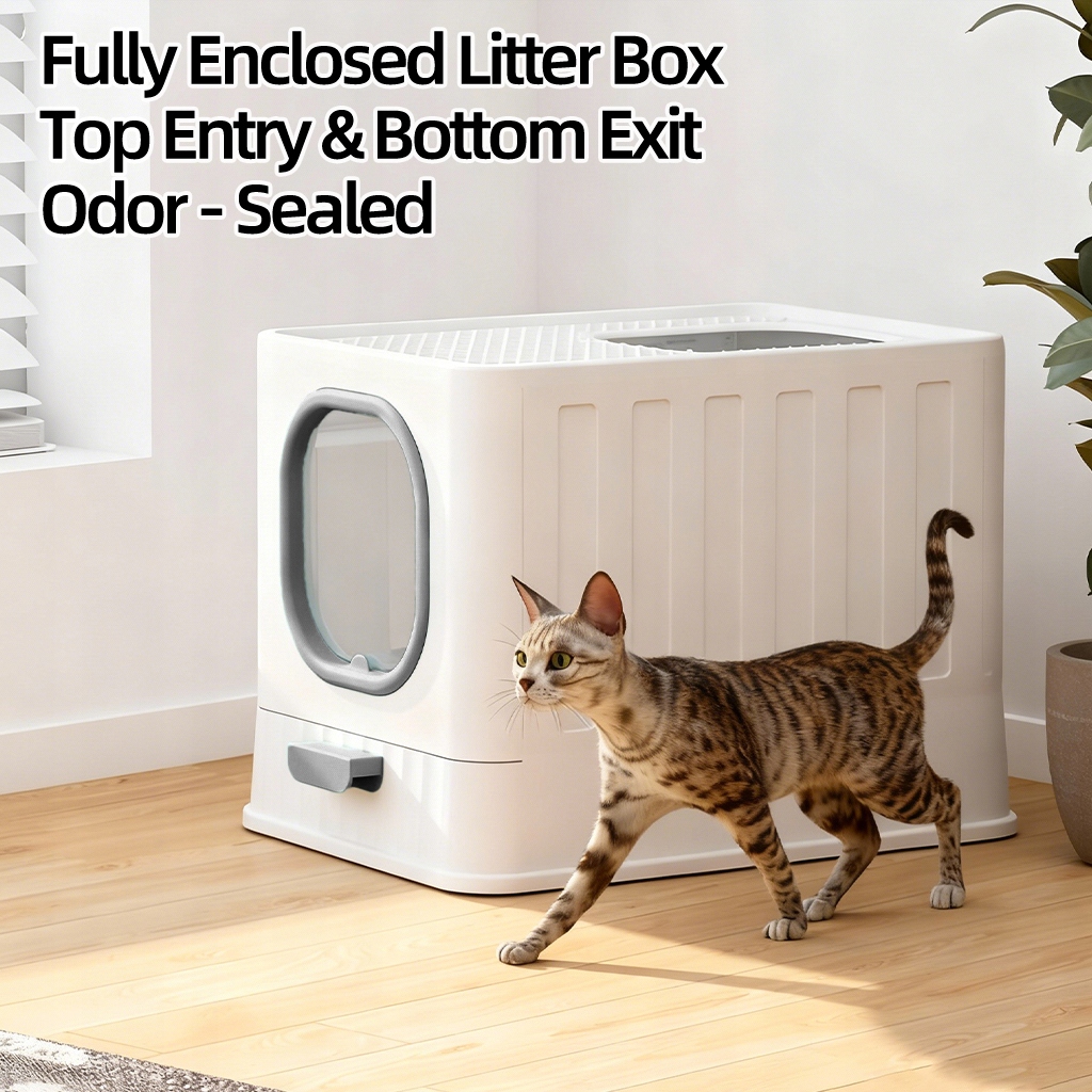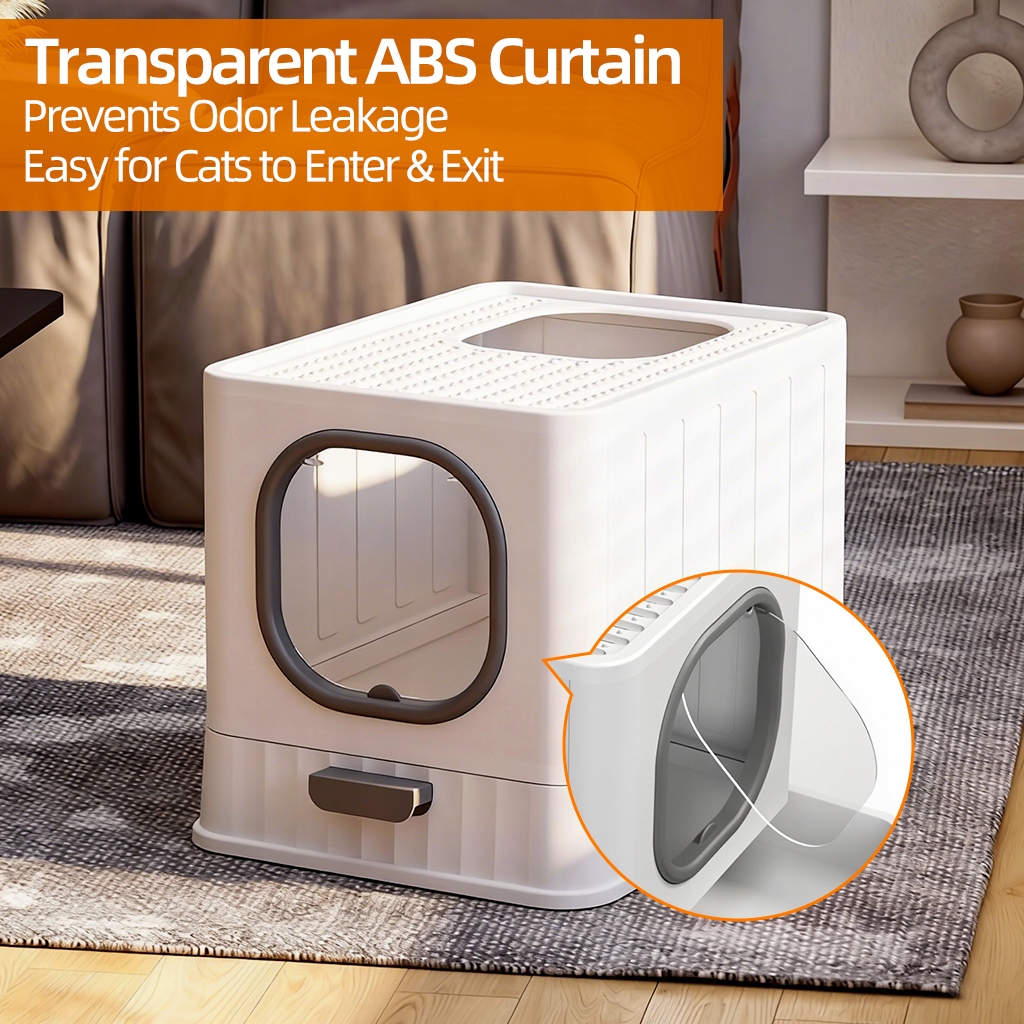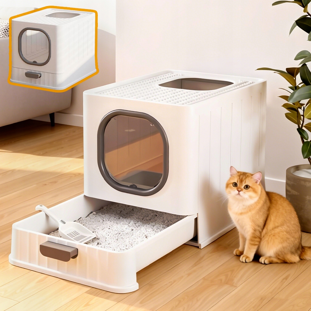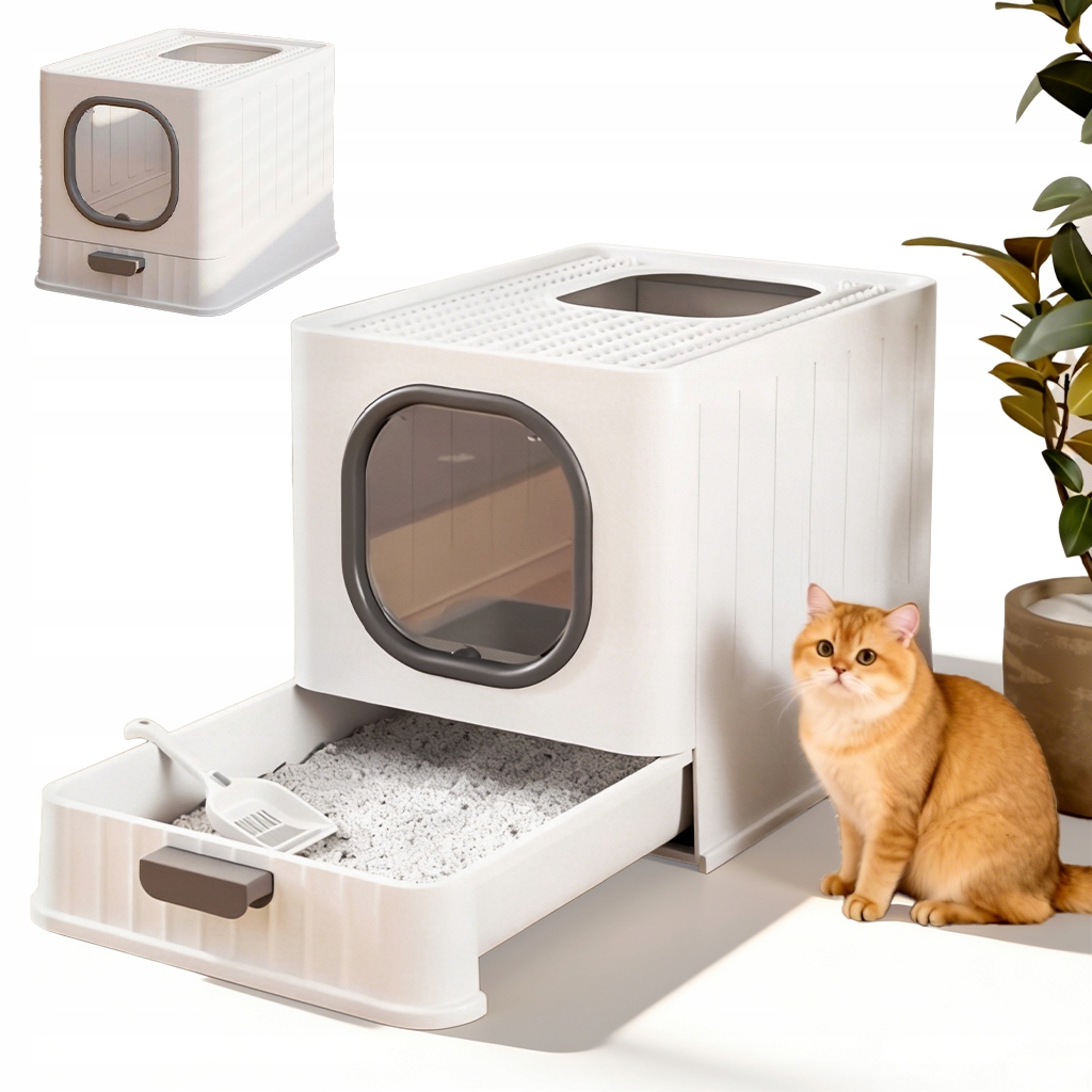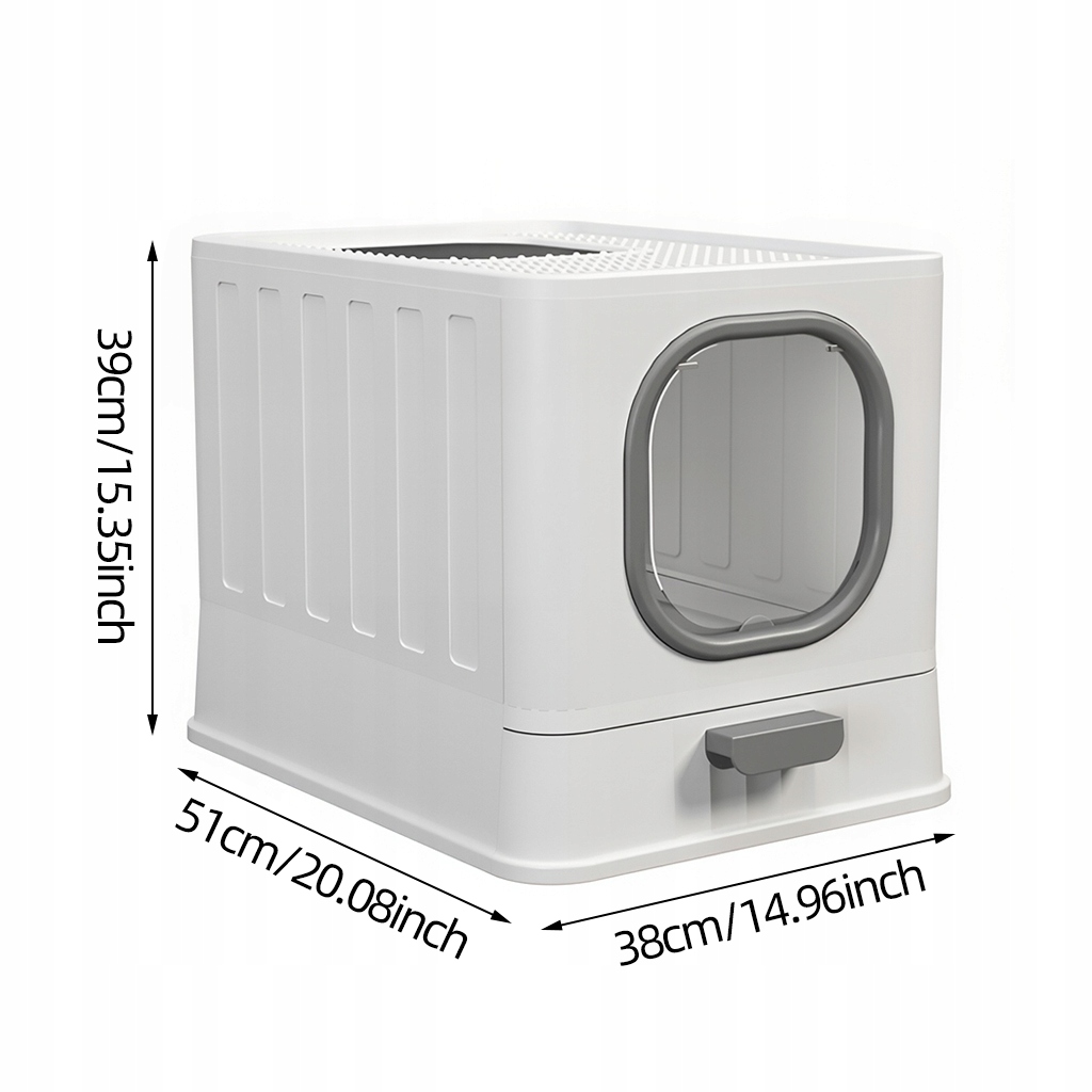 Закрытый кошачий туалет, большой домашний туалет 51х38см с выдвижным ящиком, серый