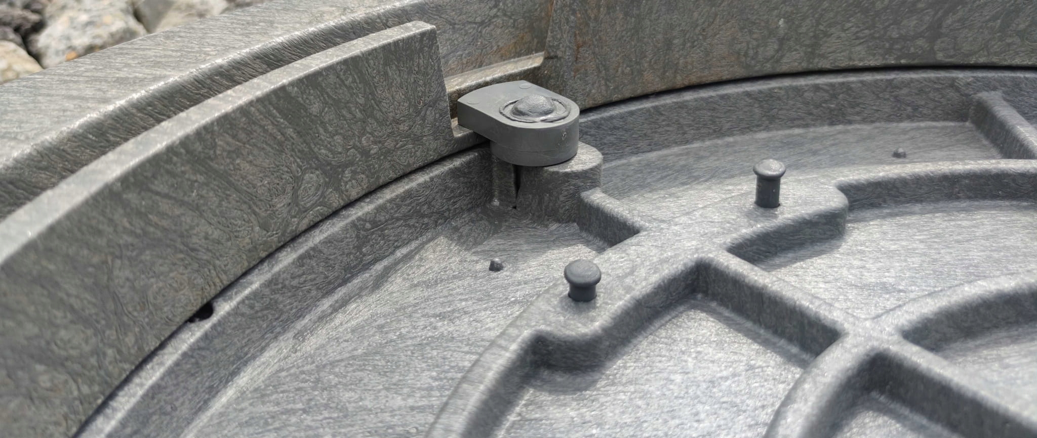 Запорный механизм предотвращает доступ детей и посторонних лиц к подземным инженерным системам. Люк термостойкий. Поверхность крышки люка защищена от длительного воздействия УФ-излучения, не трескается и не выгорает под воздействием солнечных лучей.