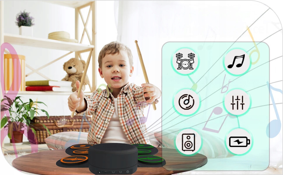 Электронные тренировочные прокладки - лучший подарок для любителей музыки, представляя расслабляющую, приятную и удобную атмосферу на пикниках и путешествиях. Электронные наборы барабанов могут вызвать интерес к музыке у детей старше 3 лет, и, конечно, идеальный музыкальный подарок на дни рождения, школьные репетиции и Рождество.