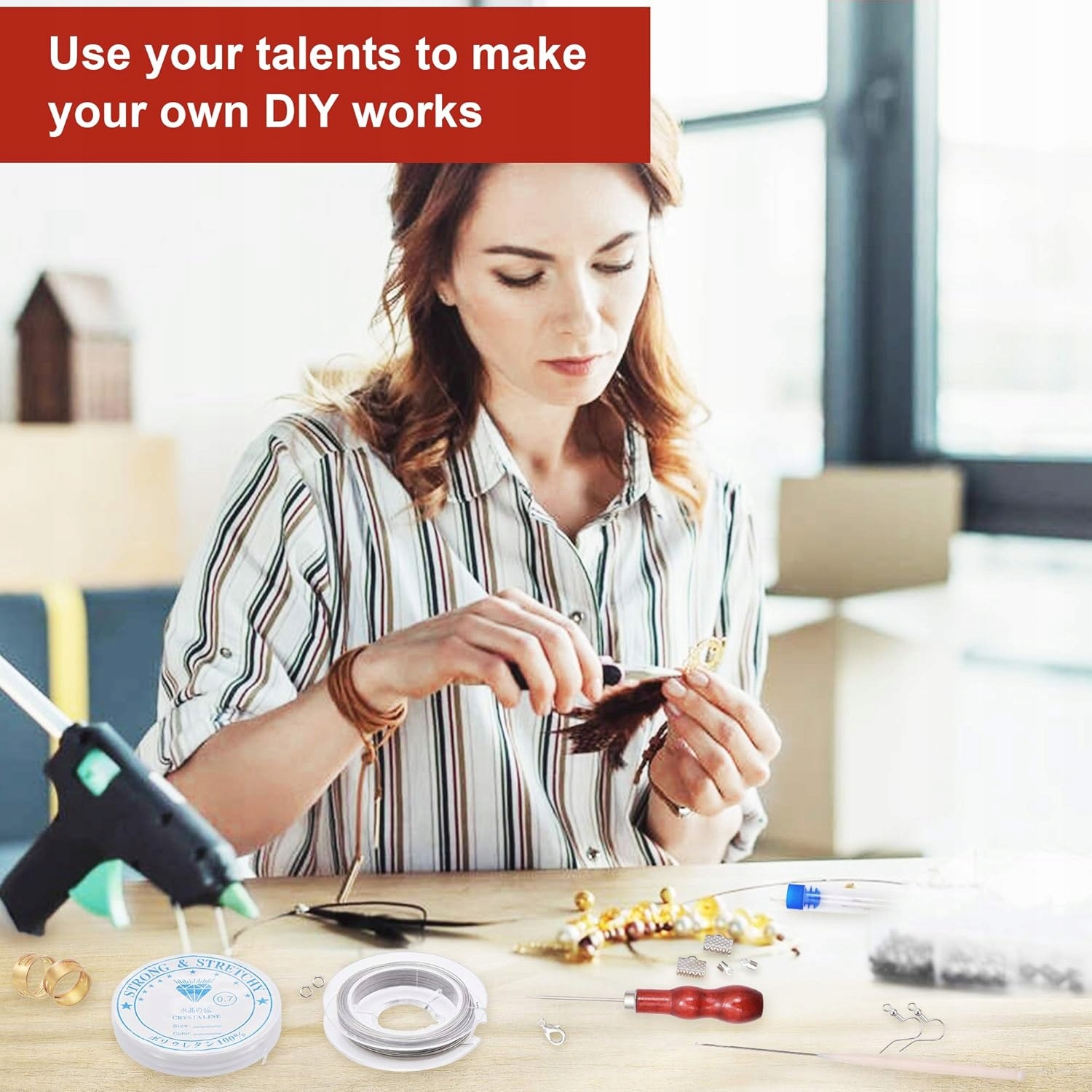 содержит 1300 ювелирных элементов и 17 инструментов, идеально подходящих для браслетов, ожерелий и серьс.