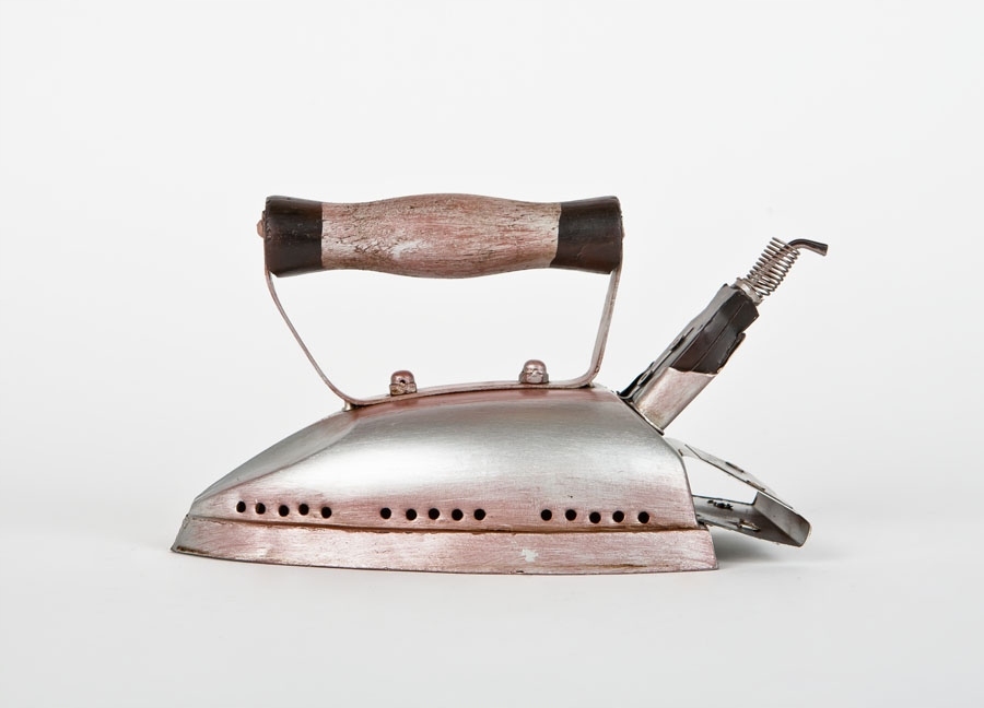Изделие выглядит очень аутентично. Все очень устойчиво.Ручка утюга сделана из дерева и может вращаться. Остальная часть модели выполнена из легкого металла.