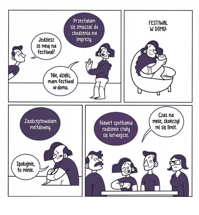 "После английского" камуфляжа "Сара Баргиэли и французского" la différence невидимо "Джули Дачиз, наконец, у нас есть польский комикс о женщине в спектре аутизма. Как и иностранные названия, Маскированные рассказывают об жизни позднего диагноза.