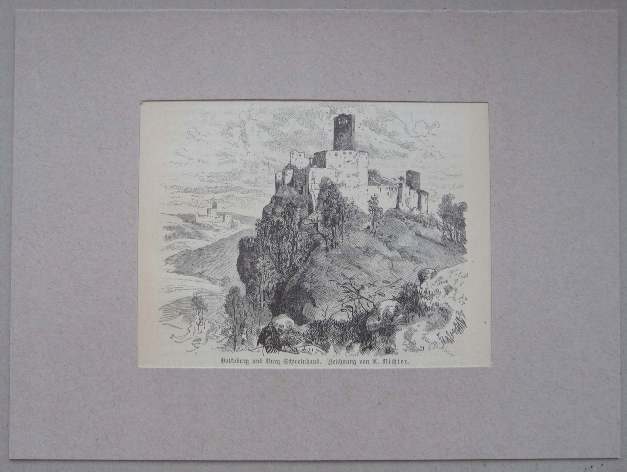 ZAMEK BOLKÓW, ZAMEK ŚWINY (ŚWINKÓW), drzeworyt 1884, KARKONOSZE