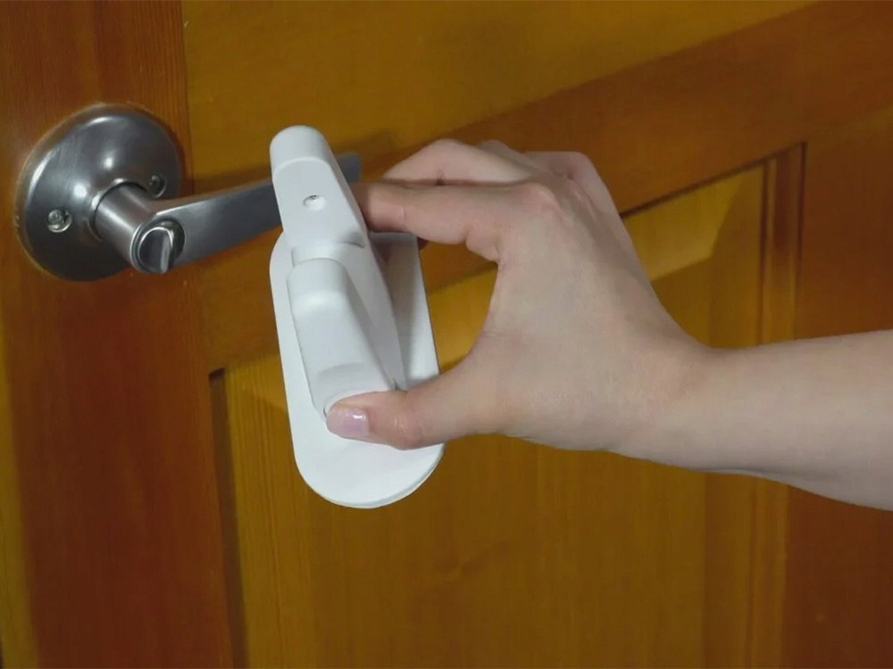 Замок прост в использовании для взрослого. Перед приклеиванием поверхность должна быть обезвреживана, затем с двойной лентой придерживаться желаемого места. Чтобы открыть защиту, нажмите кнопки с обеих сторон реакции.
