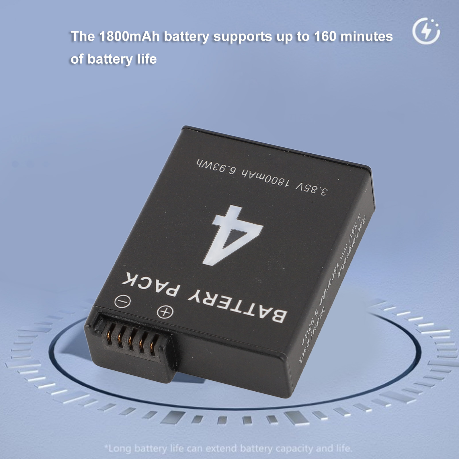 1. Характеристики батареи: В комплект входят 2 литиевые батареи емкостью 1800 мАч, обеспечивающие до 160 минут автономной работы, подходят для камер Osmo Action 4 и Osmo Action 3, подходят для путешествий и других видов активного отдыха.
