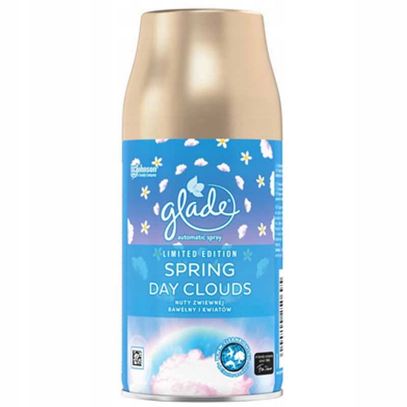 Glade Spring Day Clouds — приятный аромат с нотами воздушного хлопка, обладающий современным характером благодаря нотам цветов, свежести воздуха и игристого, цитрусового микса. .