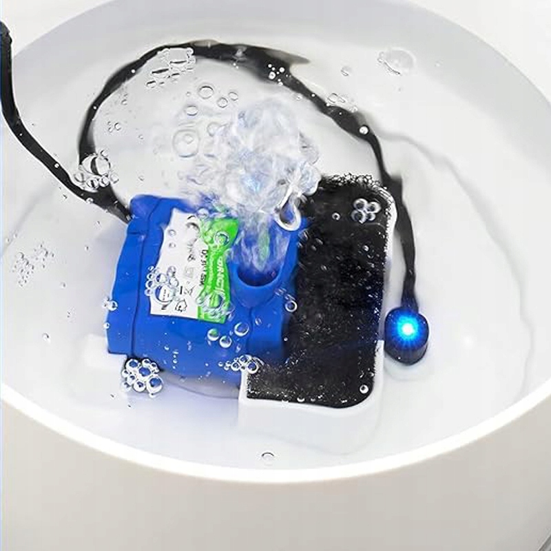 Уровень воды не должен быть ниже уровня насоса, и его следует регулярно доливать, чтобы обеспечить достаточное количество воды и предотвратить высыхание насоса, что может привести к фонтан провалится. В обычных условиях воду следует заменить в течение 3-4 дней, иначе качество воды ухудшится и пострадает здоровье домашних животных. Если вы слышите громкий звук воды, вам нужно немедленно добавить воду. Если уровень воды составляет лишь половину того, что вы видите через окно, немедленно долейте воду. Насос следует очищать водой с мылом каждые 2–4 недели. Примечание. Не оставляйте на фильтре мыльные пятна.