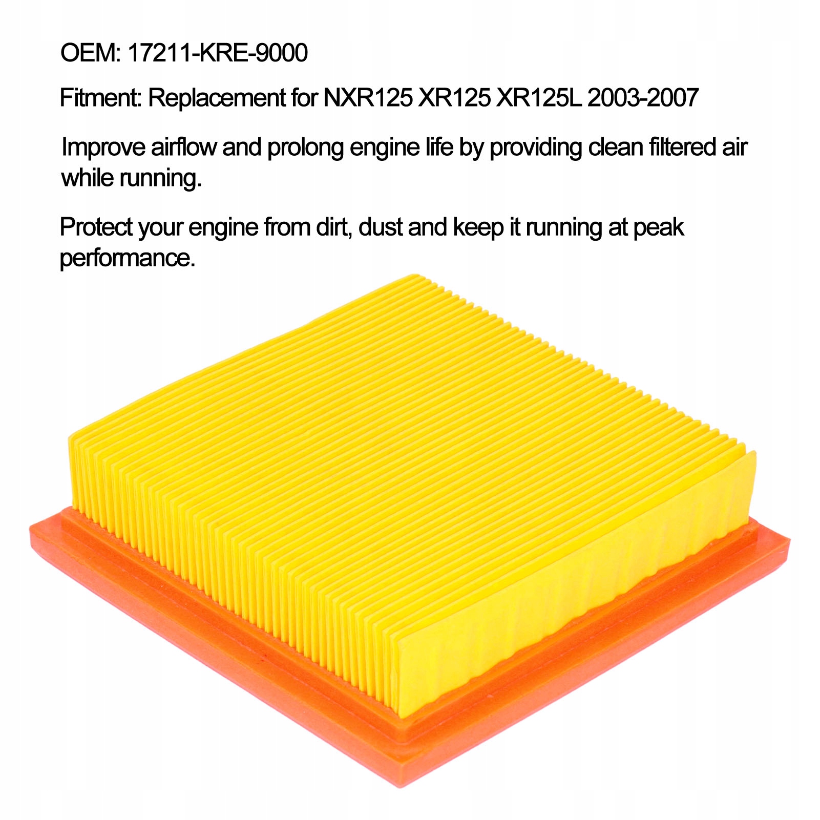 2. Идеальная посадка: воздушный фильтр Perfect является идеальной заменой NXR125 XR125 XR125L 2003-2007 годов, чтобы лучше соответствовать вашим требованиям.