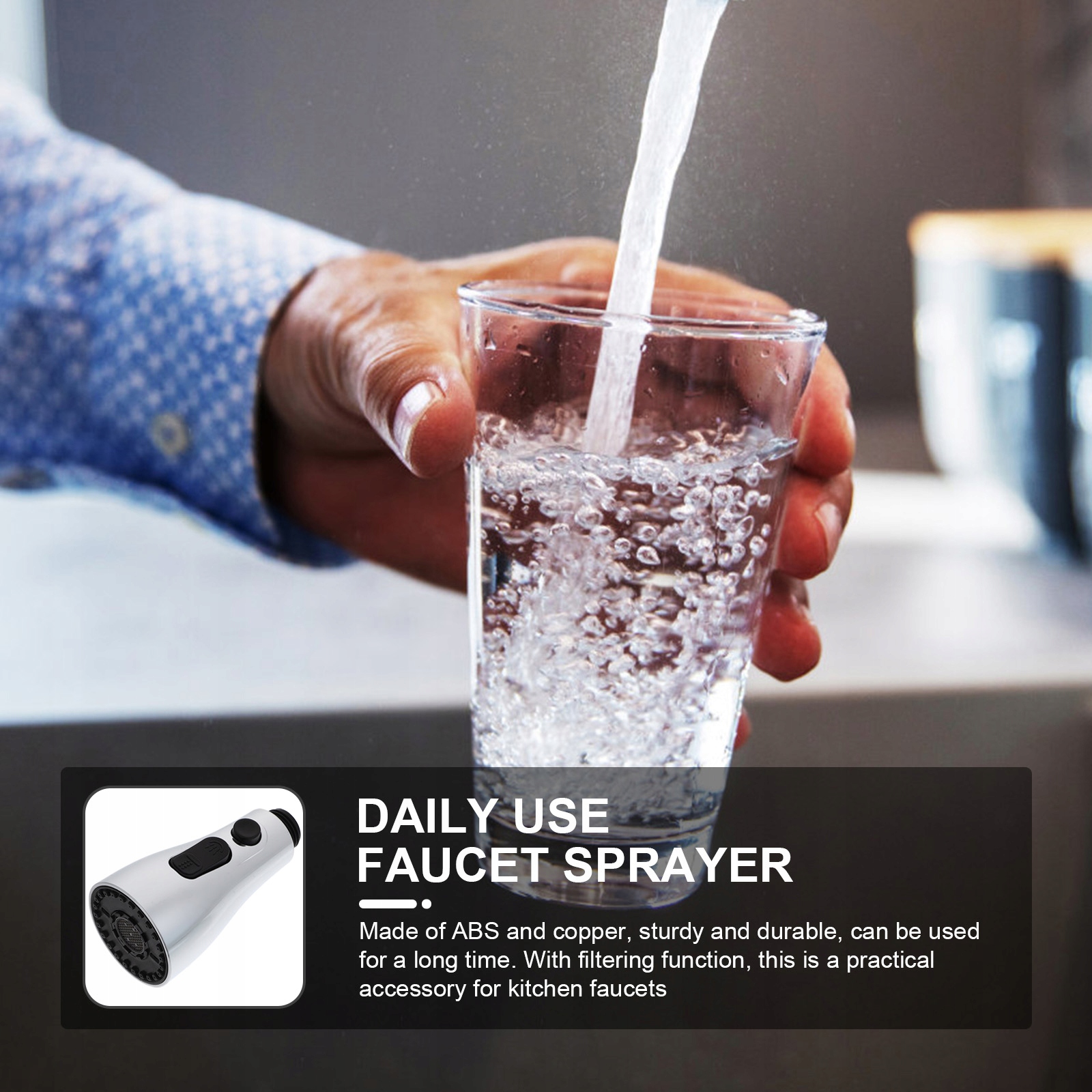 ✅, проведенный из ABS и меди, прочный и долговечный, может использоваться в течение длительного времени. Благодаря функции фильтрации, это практическое аксессуар для кухонных батарей.