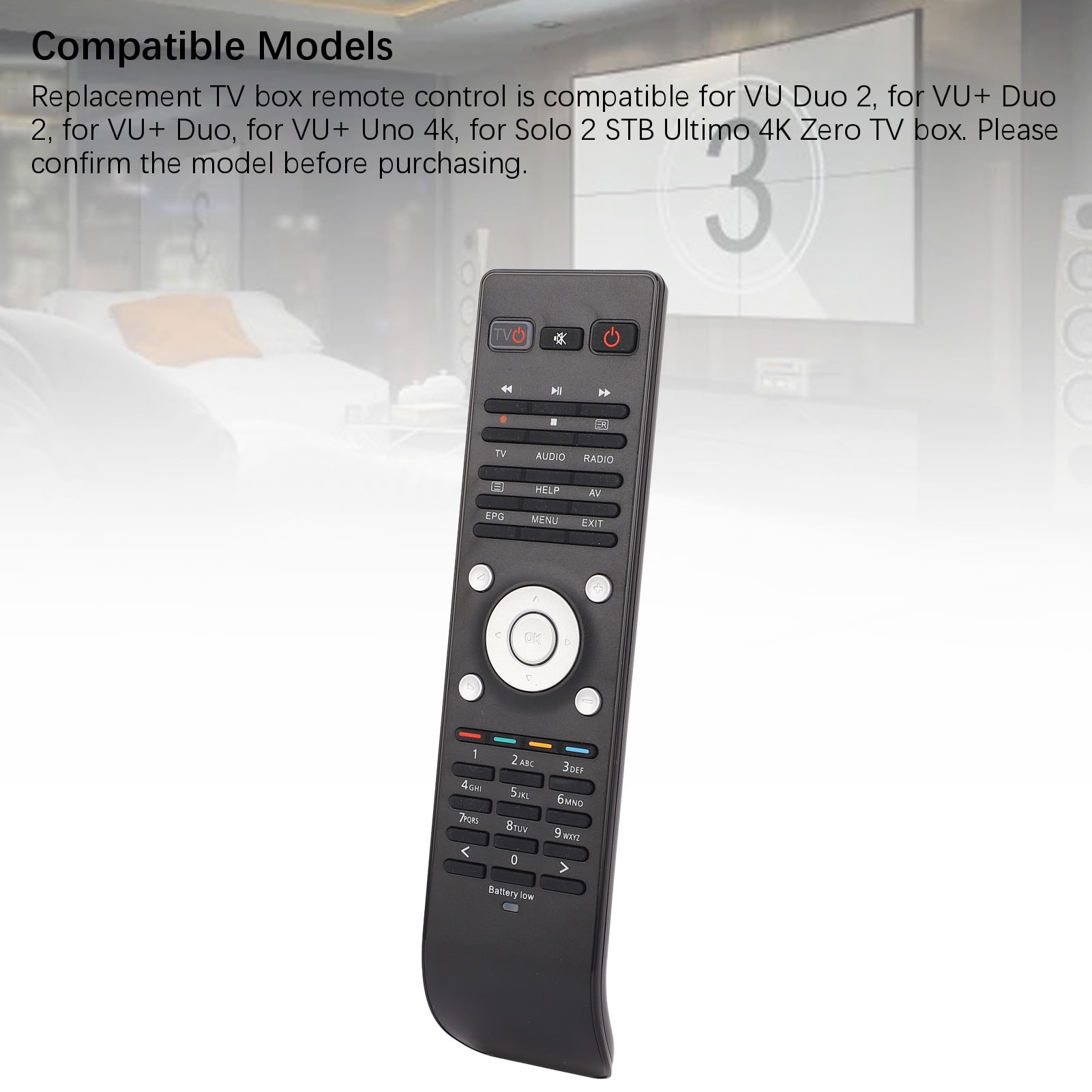 1. Совместимые модели: замена телевизионного ящика Дистанционное управление совместим для Vu Duo 2, для Vu+ Duo 2, для Vu+ Duo, для Vu+ Uno 4K, для Solo 2 STB Ultimo 4K Zero TV Box. Ими, чтобы подтвердить модель перед покупкой.
