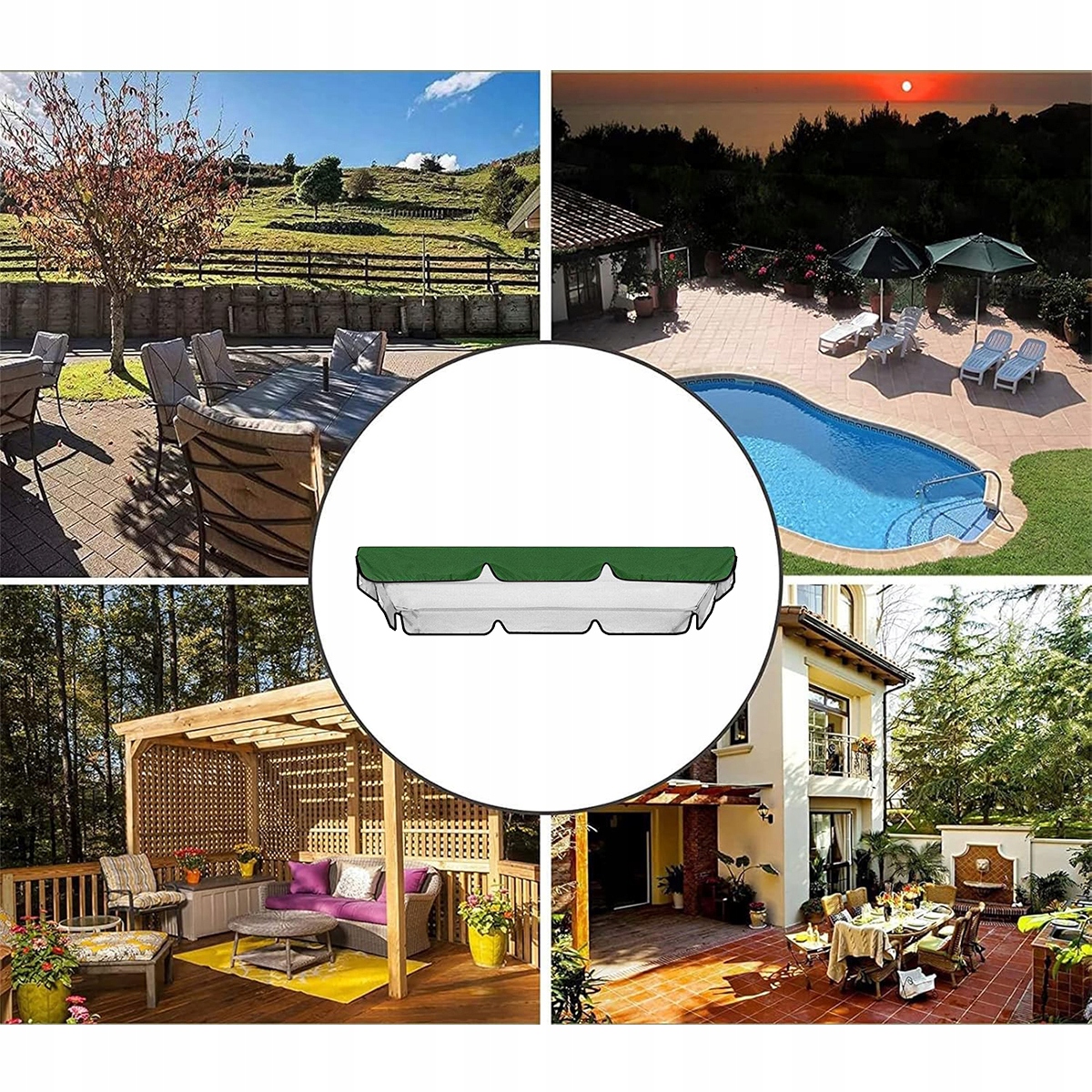 Запасная крыша для садовых качелей, сдвижная крыша, брезент для качелей на крыльце, темно-зеленый