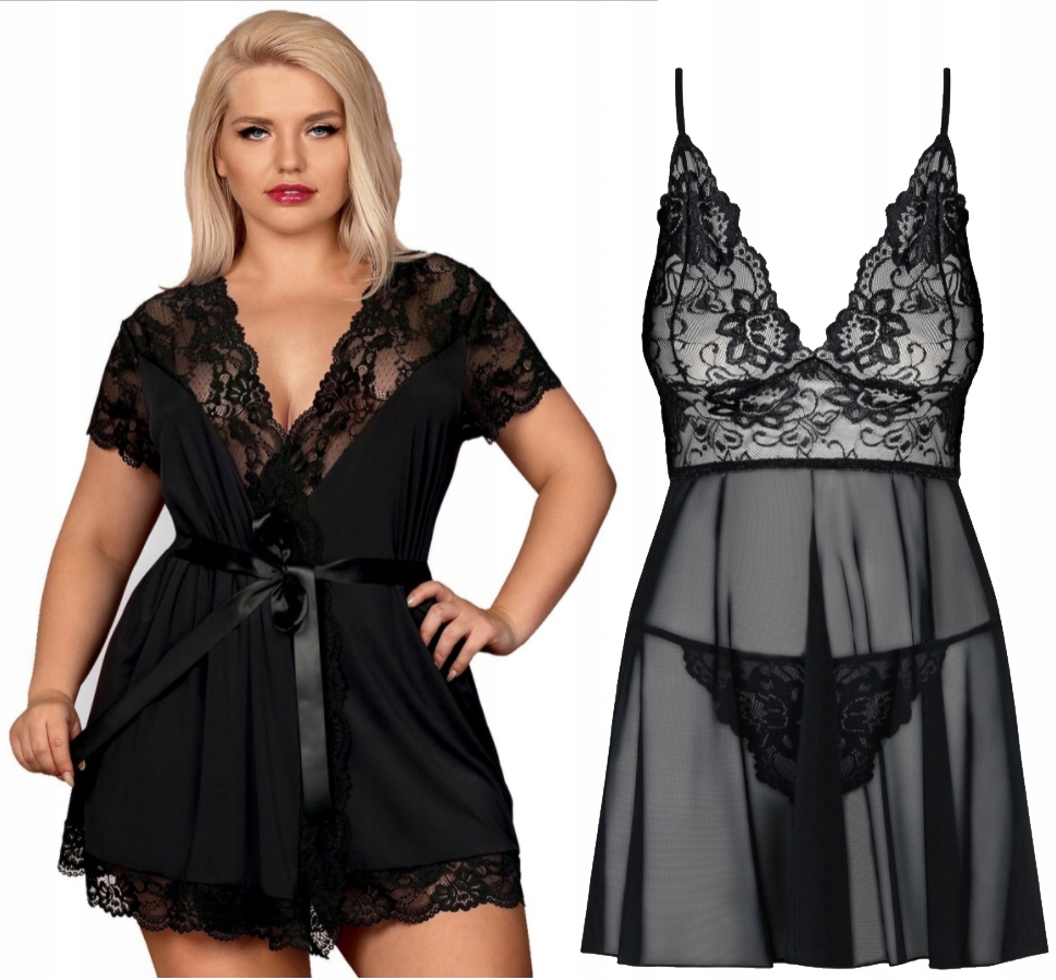 Навязчивый женский халат Black 810-PEI-1 S/M Подарок на День святого Валентина