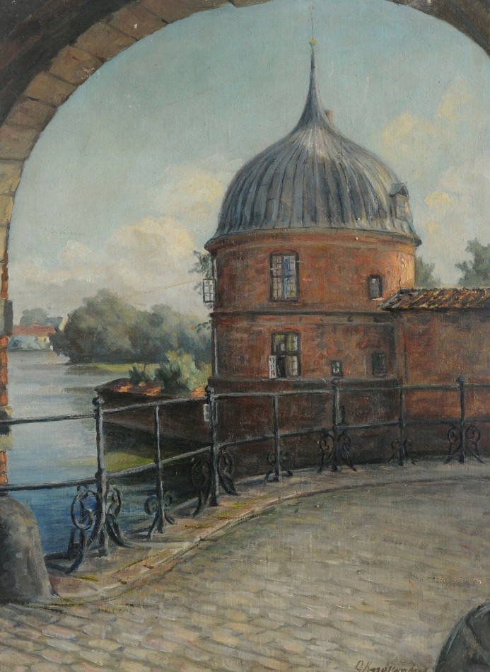 ЗАМКОВА ВЕЖА ДУЖЕ СТАРИЙ КАРТИНА ОЛІЄЮ 1919 РОКУ!