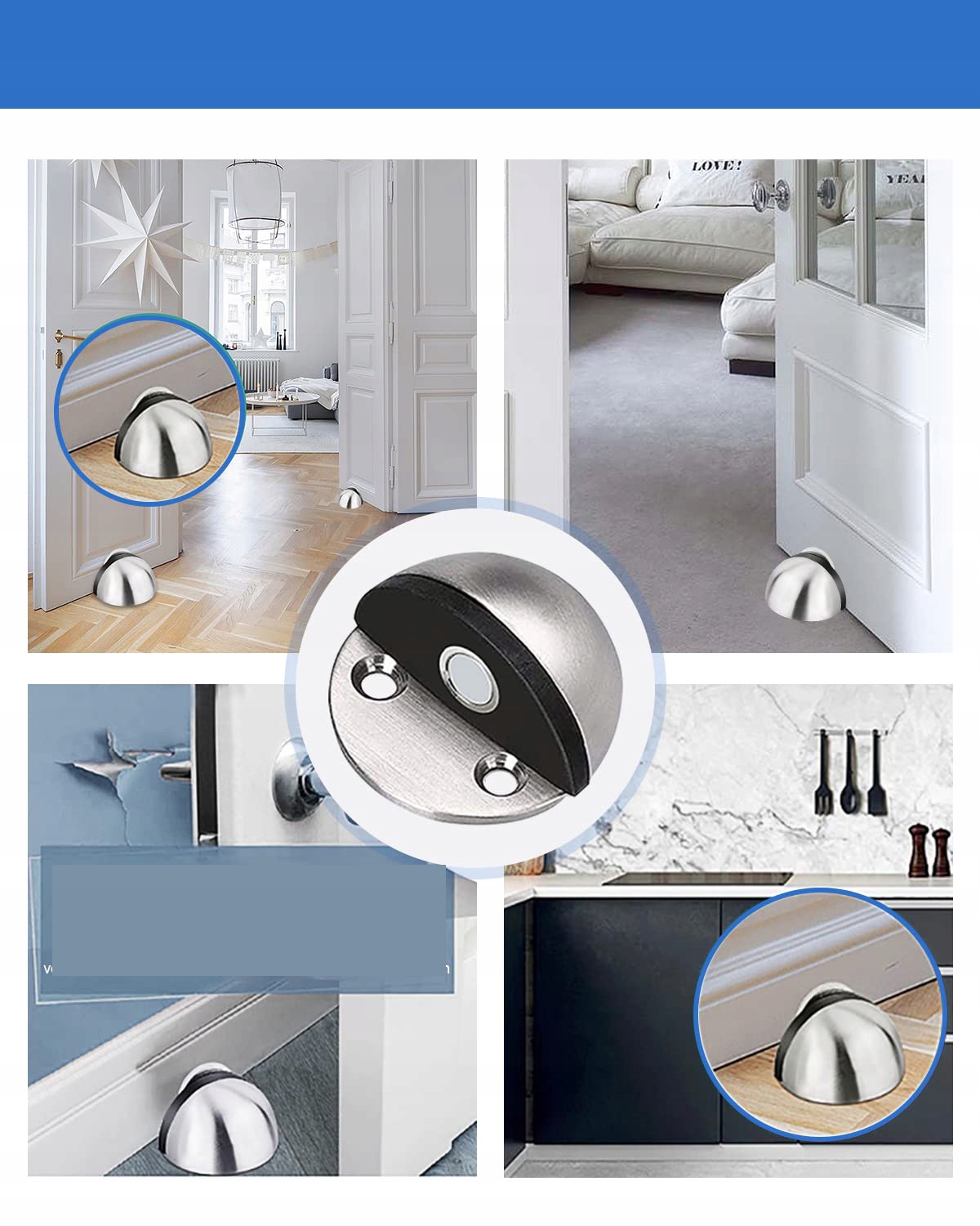 Давняя тарелка: вам не нужно беспокоиться о разрыве между ограничителем и дверью. Даже если дверь выше этой остановки, они также могут закрыться, работая благодаря длинной плите. Эти магнитные двери купола соответствуют дверью с зазором от 3 мм до 30 мм. Устойчивый к ржавчине и прочному: магнитный бампер изготовлен из высокого качества сборочной нержавеющей стали, которая твердо и устойчив к ржавчине, обеспечивая работу во влажных комнатах. Сметная база может значительно продлить срок службы двери.