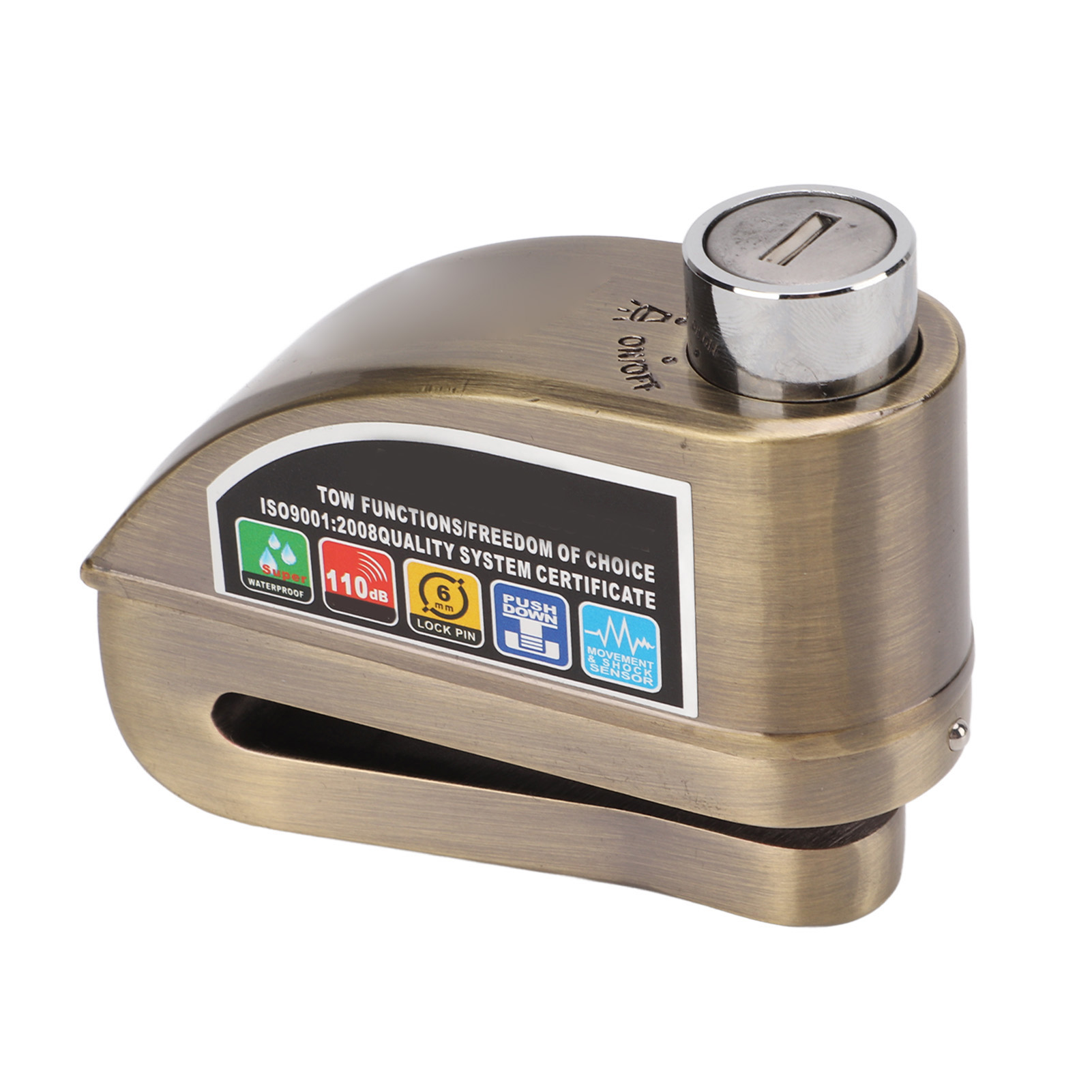1. Высококачественный материал: замок дискового тормоза изготовлен из высококачественного цинкового сплава, не ржавеет, водонепроницаем, высокопрочен, прочен и долговечен. 2. Защита от кражи: замок с сигнальным щитком защищает ваш мотоцикл от кражи при парковке дома или на открытом воздухе, сохраняя ваш мотоцикл в безопасности. 3. Сигнал тревоги 110 дБ: при обнаружении вибрации блокировка защитного колеса издаст три предупреждающих звуковых сигнала, а если он снова вибрирует, он издаст непрерывный резкий звук громкостью 110 дБ в течение 10 секунд. 4. Простота в эксплуатации: прост в использовании, оснащен тремя клавишами, не требует сложных операций, удобен в использовании. 5. Широкое применение: защитный дисковый замок подходит для мотоциклов, электрических велосипедов, велосипедов, горных велосипедов и т. д.