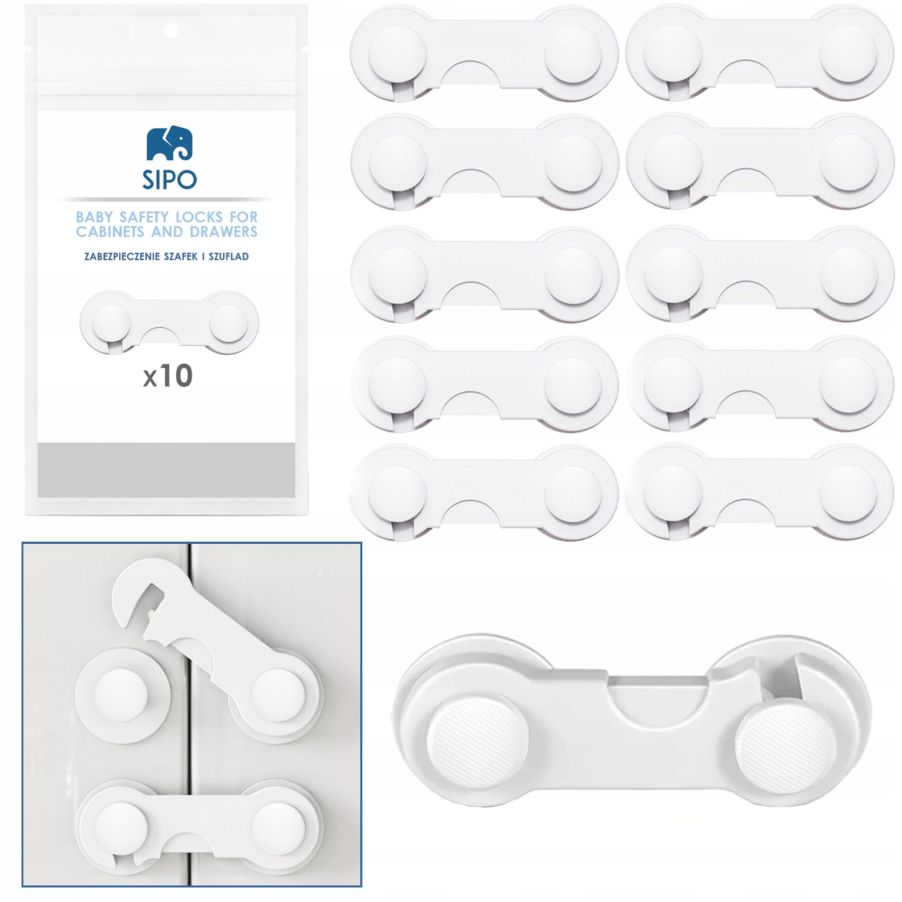 Набор SIPO из 10 замков для шкафов и ящиков с функцией легкой защелки, не позволяющей ребенку открыть охраняемую зону.