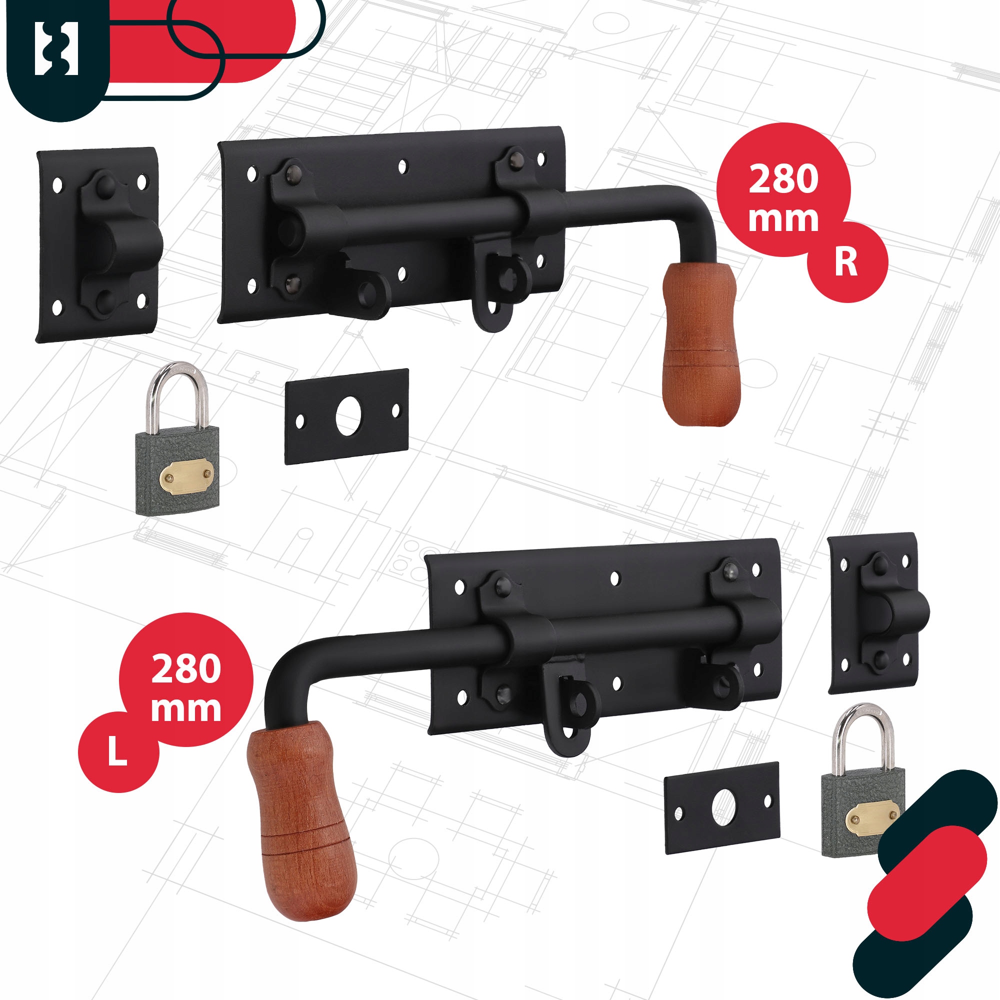 ворота затвора 280 мм гараж широкие черные законы + клавиши замков