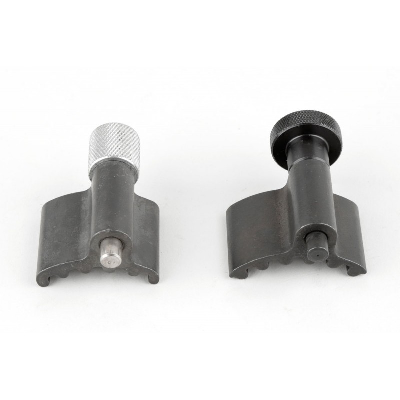 Предлагаемый комплект используется для блокировки зубчатых колес при проведении сервисных работ, в том числе при замене ремня ГРМ. Комплект позволяет зафиксировать в сервисном положении шестерни ГРМ, коленчатый вал и ролик натяжителя ремня. Особая форма замков позволяет легко точно выставить контрольные точки зажигания. Набор состоит из 6 элементов.