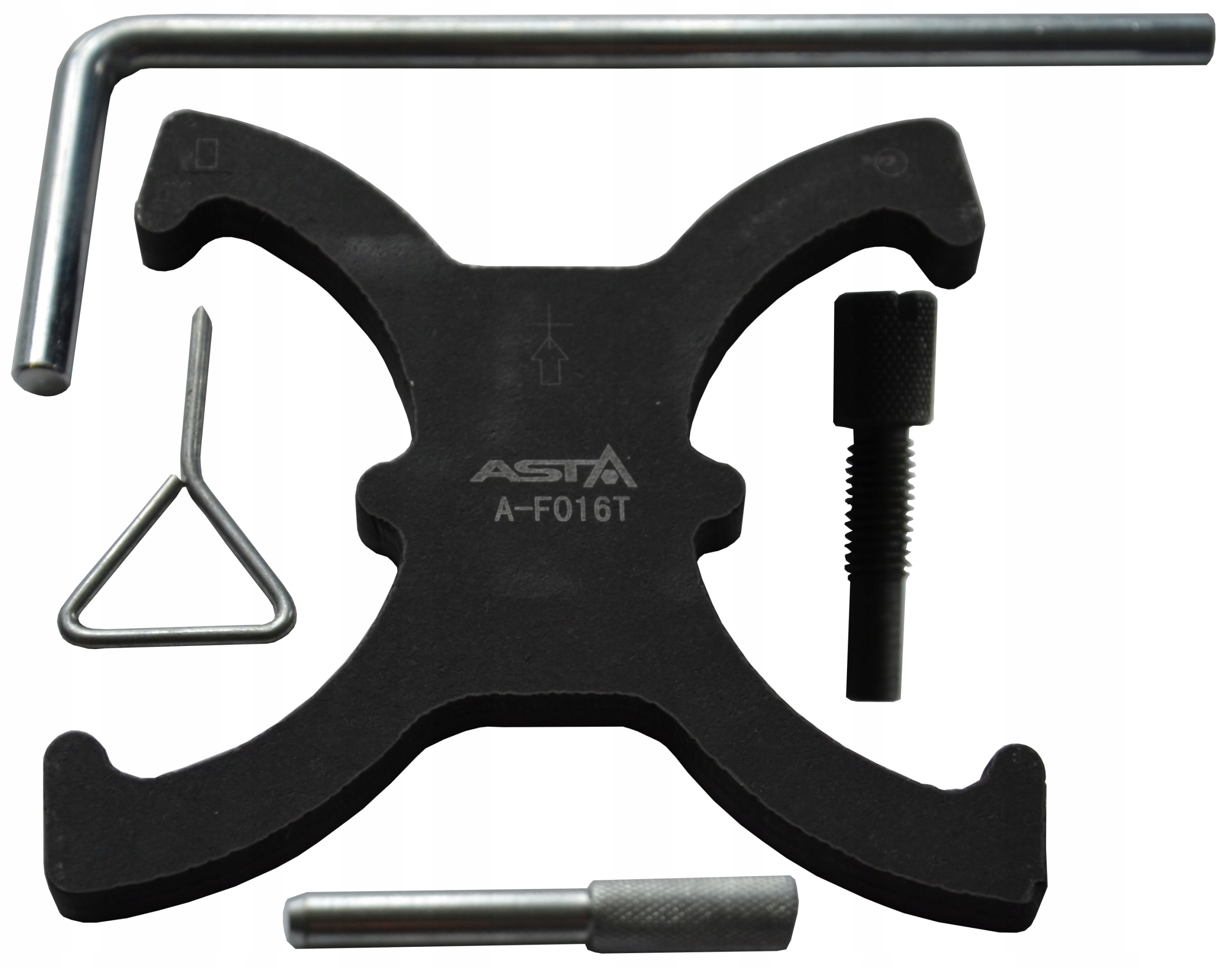 В комплект входит установочная пластина VCT, фиксатор маховика, фиксатор распределительного вала и натяжитель.
