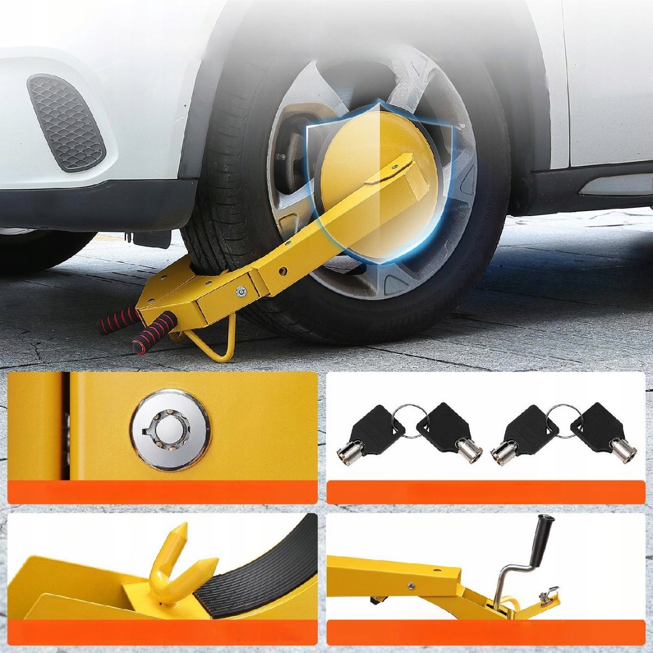 Защитная блокировка колес — это надежная функция безопасности, которая эффективно защищает транспортные средства от попыток угона. Благодаря прочной конструкции и универсальным размерам он подходит для большинства шин, обеспечивая высокий уровень защиты. Продукт идеально подходит для легковых автомобилей, прицепов и фургонов.