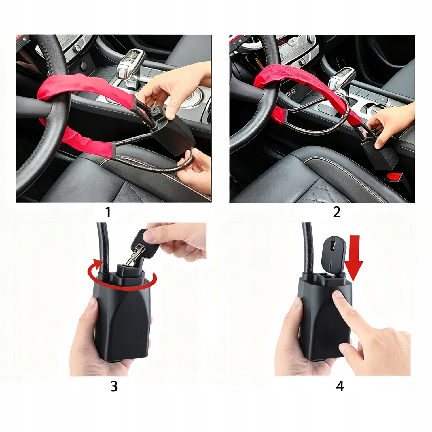 ЗАМОК РУЛЕВОГО КОЛЕСА С АВТОМОБИЛЬНОЙ ПРЯЖКОЙ, ПРОТИВОУГОННЫЙ, ПРОЧНЫЙ, ПРОЧНЫЙ, С КЛЮЧОМ