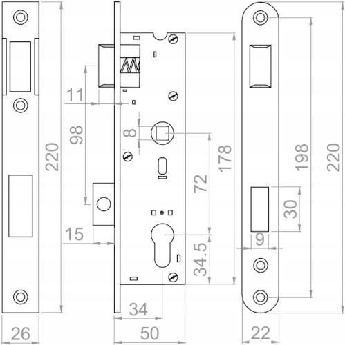 ЗАМОК ВРЕЗНЫЙ КАССЕТНЫЙ, ДВЕРЬ, ВОРОТА, 72/34