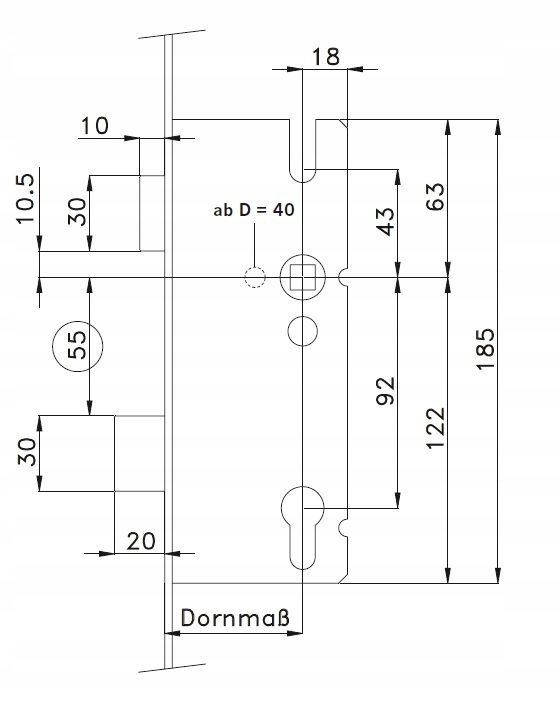- расстояние от передней части запора до оси цилиндра/ручки 35 мм