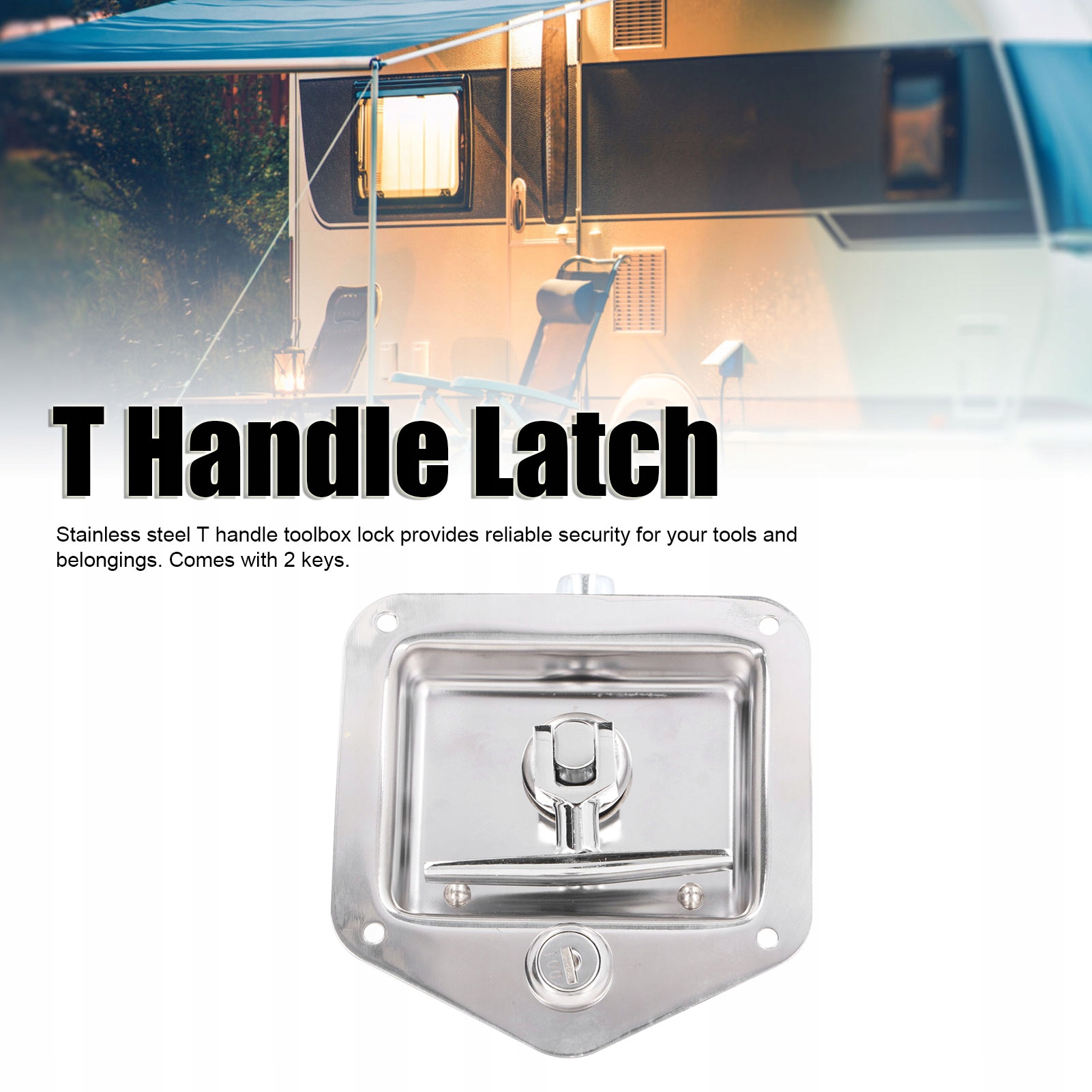 Замок для ящика для инструментов прицепа для автодома с Т-образной ручкой, нержавеющая сталь, 2 ключа