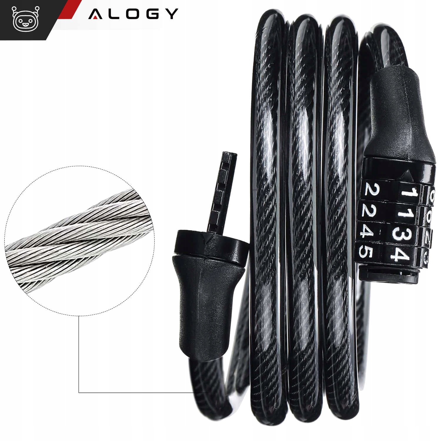 ▶️ Велосипедный замок, велосипедный замок, прочный трос, 1м, велосипедный замок Alogy с кодом, код самоката черный