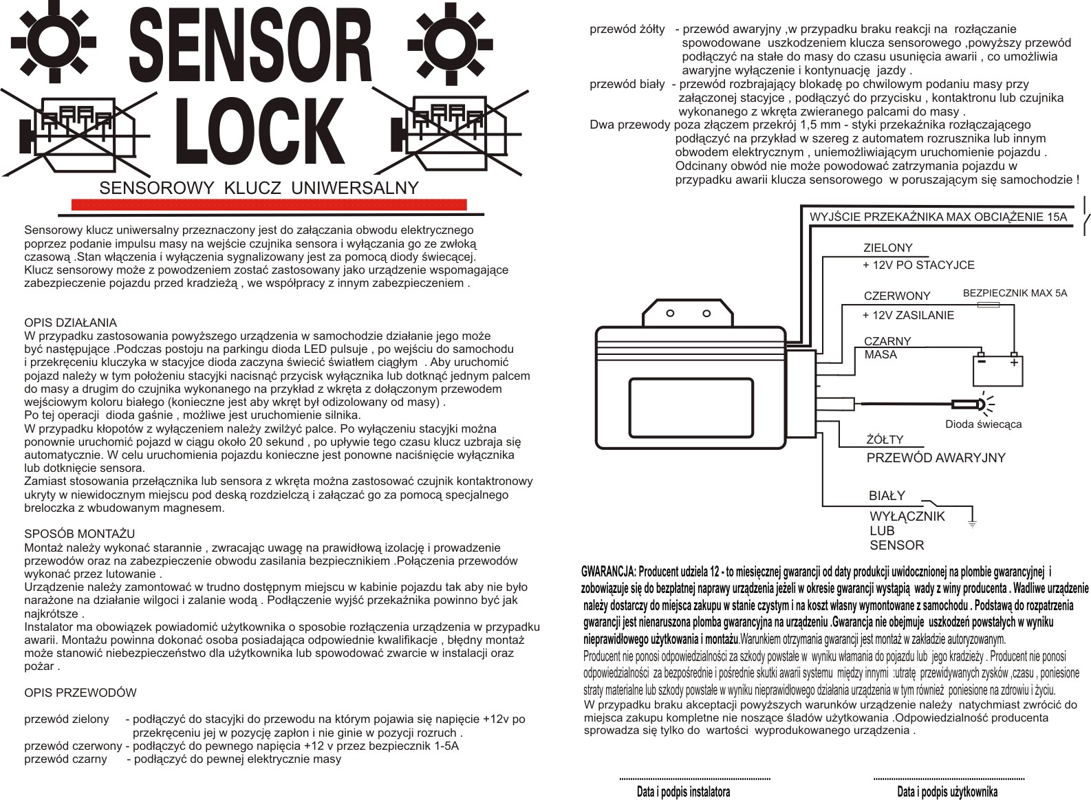 Замок предназначен для автомобилей с бензиновым двигателем. и дизельные двигатели. Благодаря оснащению замка функцией отложенного включения не возникает проблем с запуском автомобиля после случайного выключения двигателя на перекрестке или железнодорожном переезде, что повышает безопасность пользователя транспортного средства. Замок ставится на охрану только через 20 секунд после выключения зажигания. Если мы выключим и включим зажигание менее чем на 20