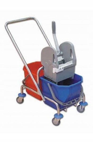 Тележка для уборки и мытья полов – идеальное и компактное решение для компаний, занимающихся уборкой больших площадей. Тележка имеет очень качественную щековую соковыжималку, которая, в отличие от других изделий этого типа, имеет сменные механизмы, пружины, петли и рычаги, а это значит, что в случае выхода из строя затраты на ремонт и обслуживание существенно сокращаются, так как каждая элемент можно заменить отдельно без необходимости приобретения новой соковыжималки.