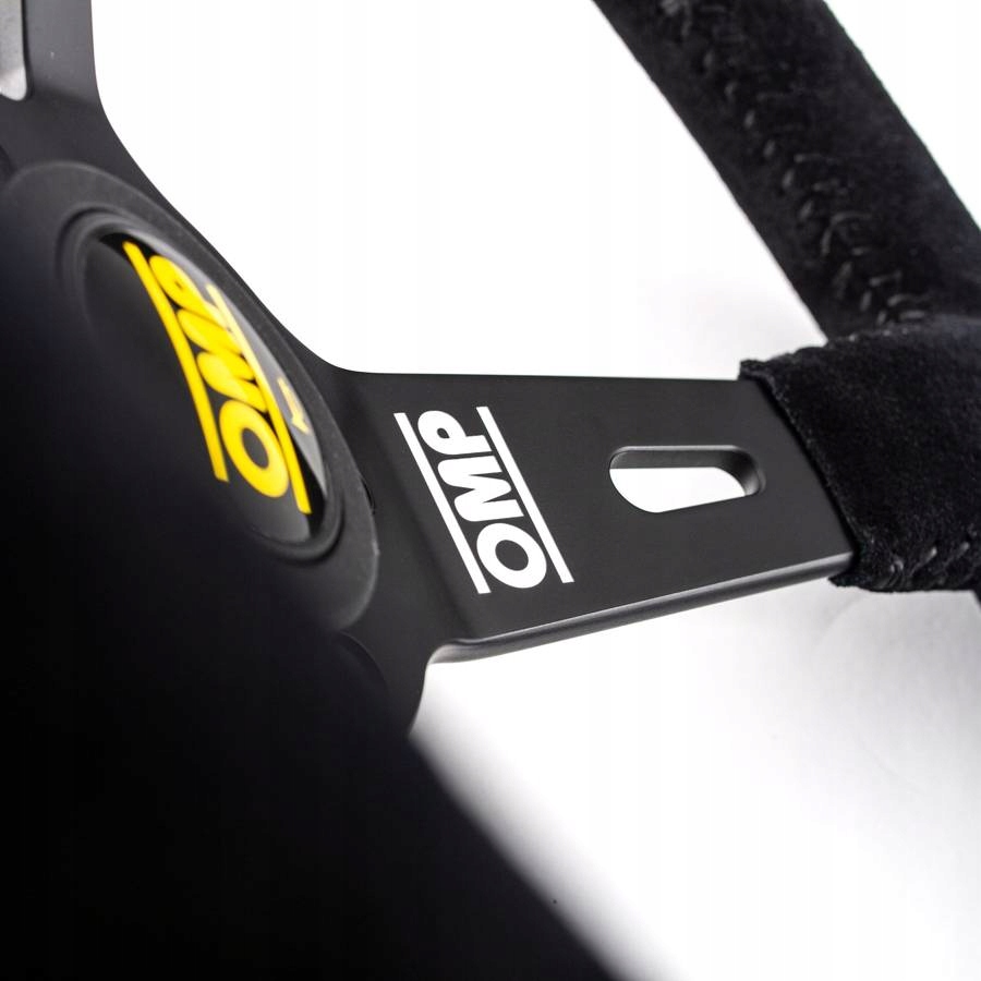 Последняя модель раллийного руля OMP. Создан для автоспорта. Рукоятки из алюминия. Толстая замшевая ручка обеспечивает очень хороший захват. Имеет желтую полоску и черные нити.