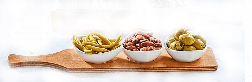 Набор из 3-х керамических мисок на буковой доске идеально подойдет для эстетичной подачи закусок, соусов и соусов.