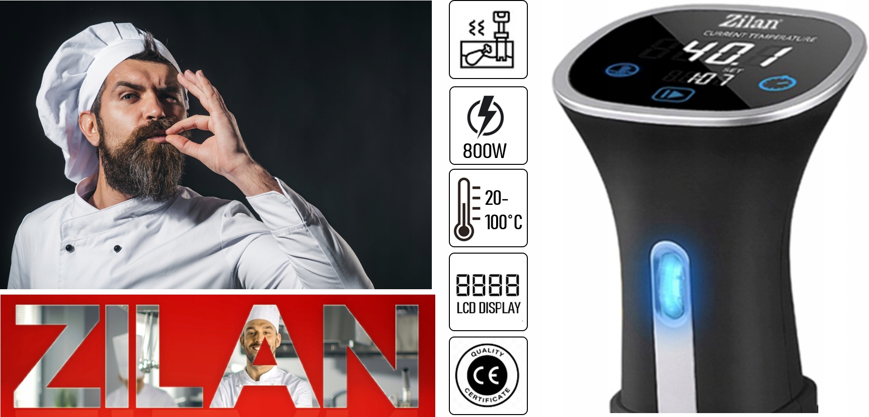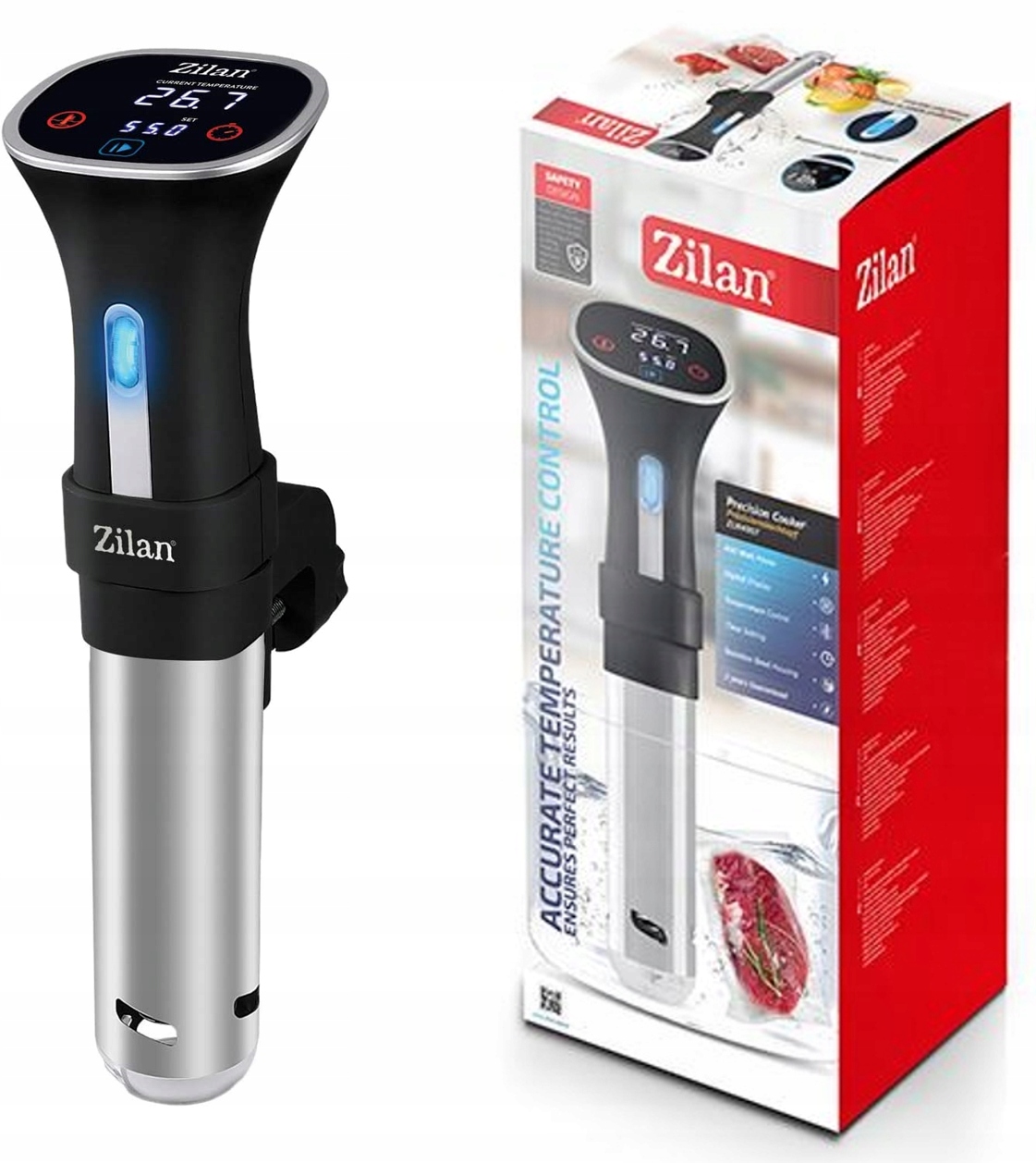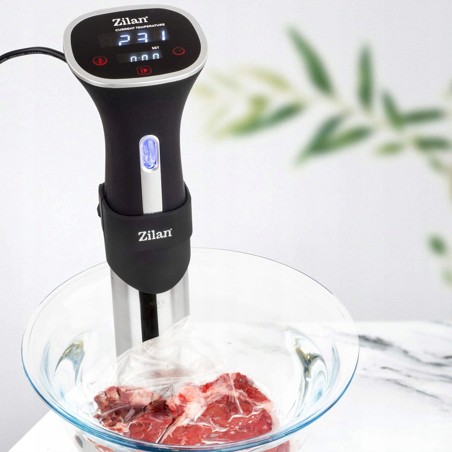 Вы можете установить желаемую температуру и время приготовления с помощью сенсорной панели. Устройство быстро нагревает воду в сосуде и точно поддерживает температуру. Все, что вам нужно, это Zilan Sous Vide Circulator, кастрюля с водой и едой в вакуумном пакете.