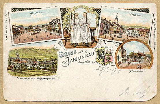 Gruss aus JABLUNKAU ::: старая оригинальная довоенная открытка, из почтового обращения 1898 года, с маркой