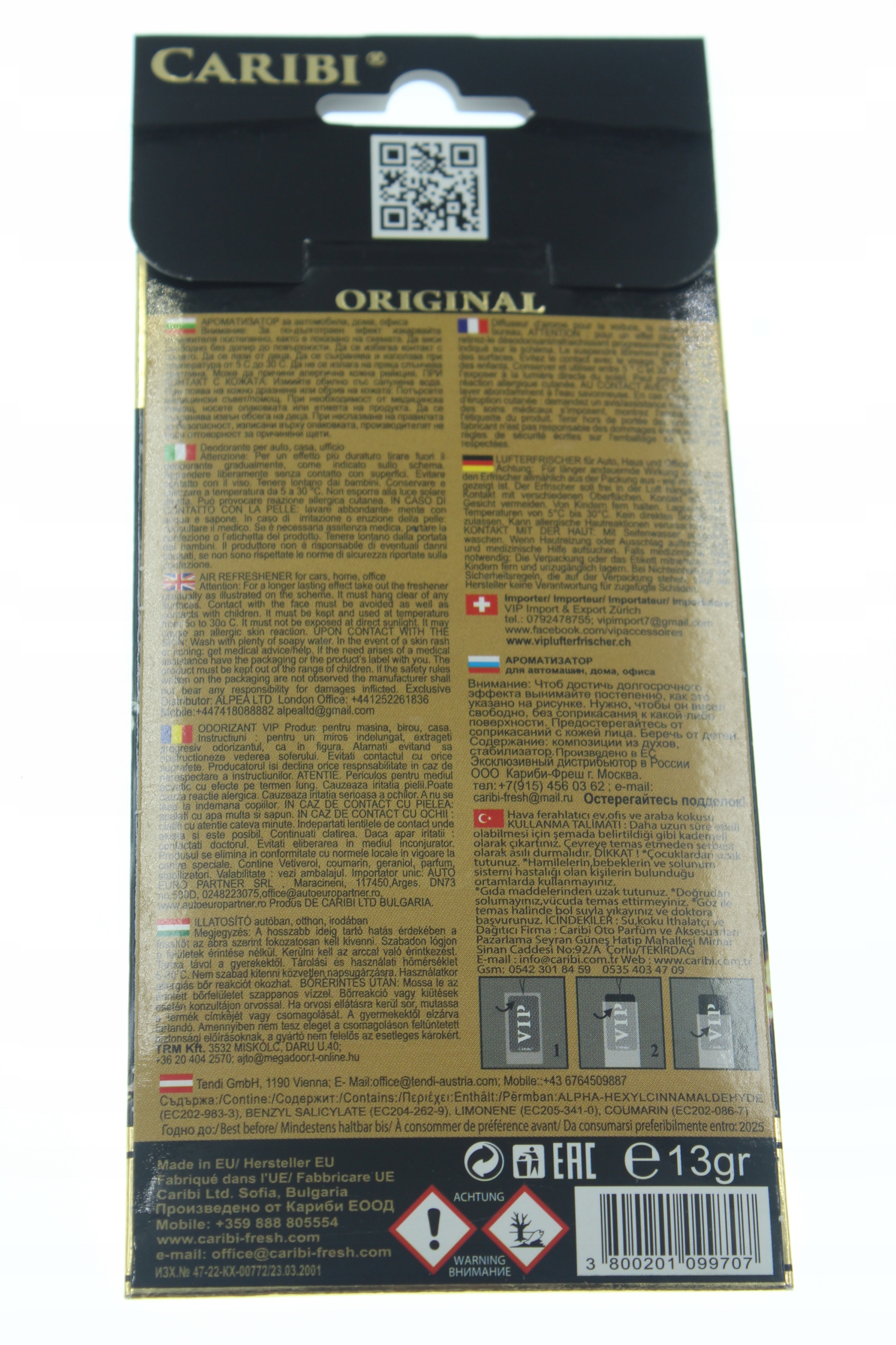 Роскошный аромат Caribi VIP вдохновлен любимыми парфюмами, известными во всем мире. Идеально подходит для использования в машине, офисе или дома, его можно, например, разместить в шкафу между одеждой или постельным бельем.