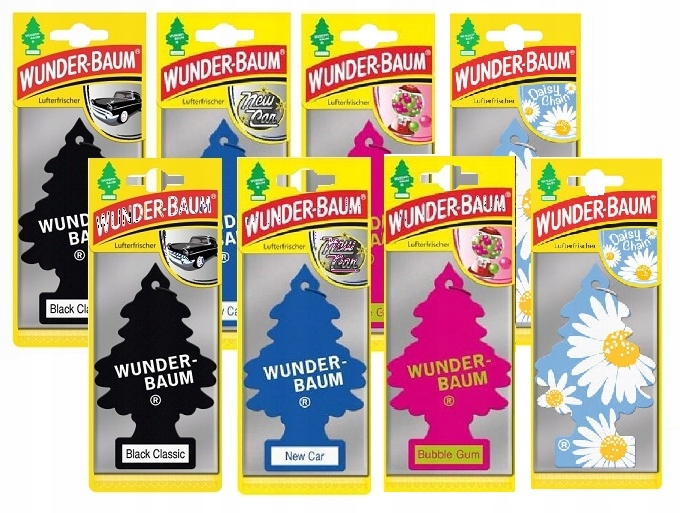 Рождественские елки Wunder Baum известны и доступны по всему миру и очень популярны. Предложение включает в себя несколько типов деревьев с различными нотами аромата, из которых каждый из них выберет правильный запах для себя. Их производительность и поддержание до восьми недель аромат