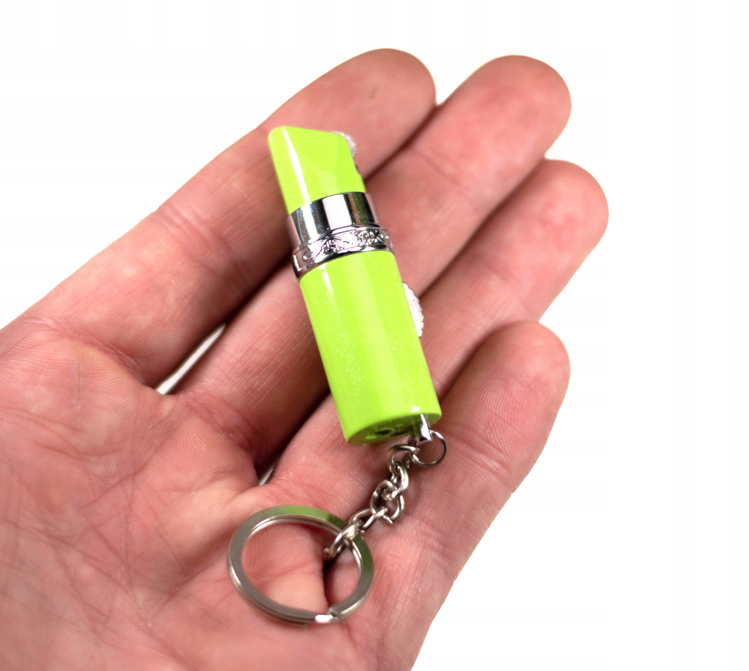 - Зажигалку можно прикрепить к ключам благодаря мини-цепочке с никелированным кольцом.