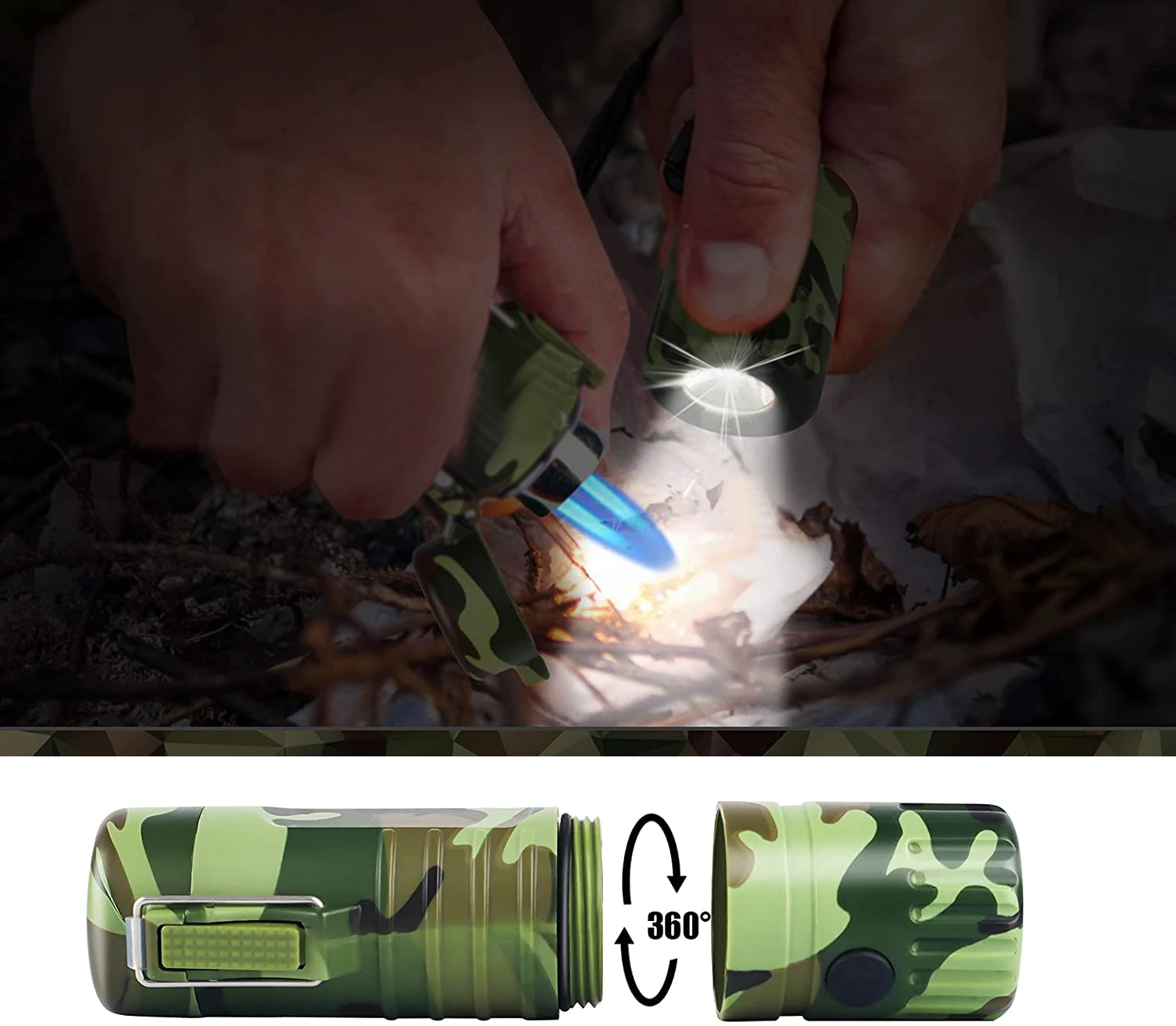 Светящаяся зажигалка очень элегантно и прочно сделана и упакована в стильную черную коробку с мотивом выживания - идеально подходит для подарка
