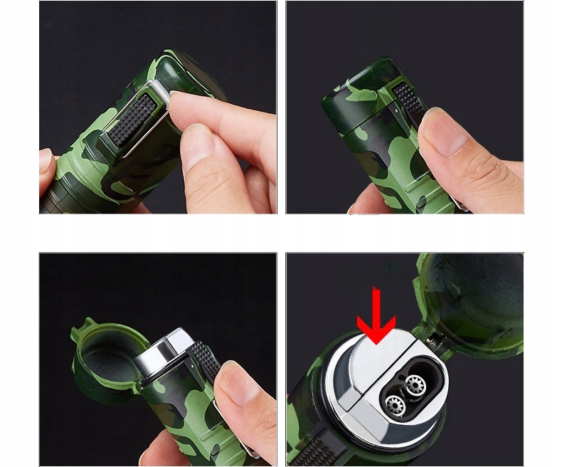 - Накаленная зажигалка излучает двойную дугу света, защищена от ветра.