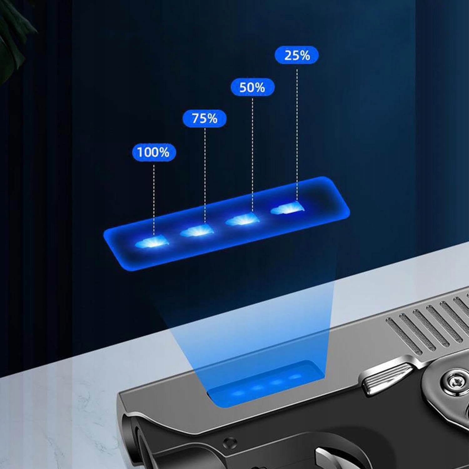☑️Ветрозащитную зажигалку можно заряжать через стандартный кабель micro USB на любом USB-совместимом устройстве, например, компьютере, ноутбуке, блоке питания. банка, адаптеры и т. д. Он имеет четыре светодиодных индикатора, указывающих уровень заряда батареи, которые в любой момент напомнят вам о необходимости зарядить зажигалку.