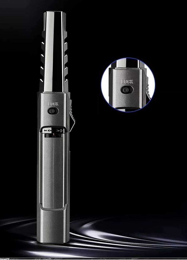 Представляем тлеющую зажигалку/горелку. Зажигалка имеет блокировку от случайного зажигания и клапан для заправки газом. Наконечник горелки имеет металлическую крышку, защищающую от высоких температур.