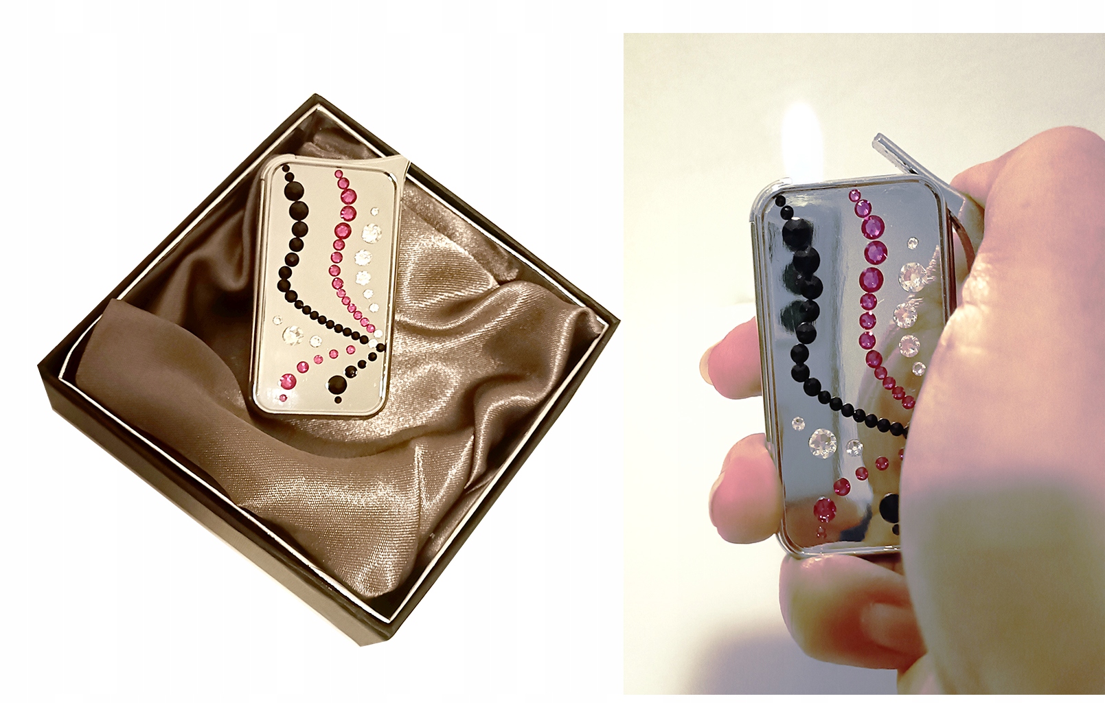 Zapalniczka Swarovski Wave Black Green w pudelku metal/piezo chrom zielony