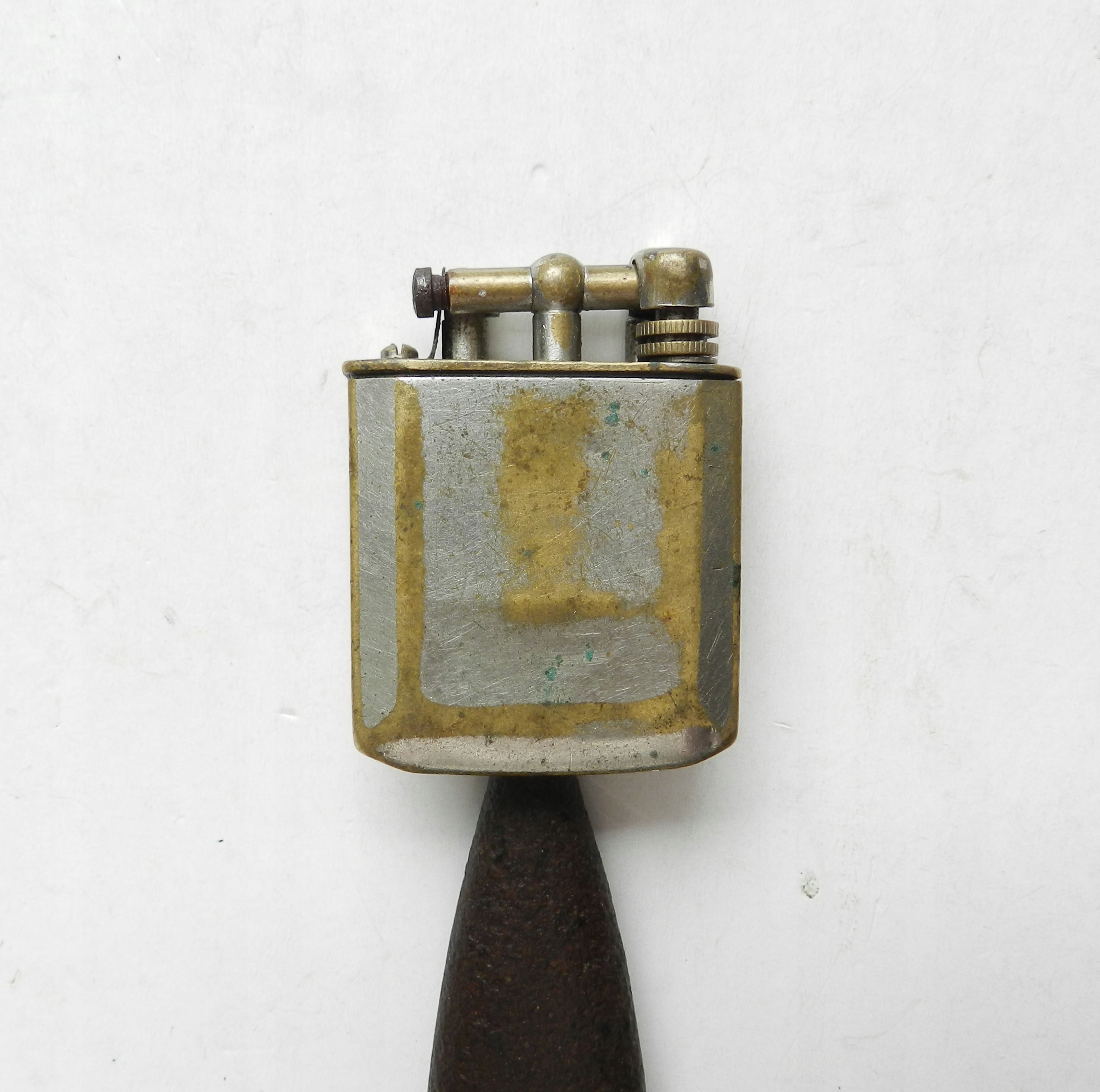 Предмет аукциона – оригинальная бензиновая зажигалка времен Третьего рейха. Подпись: «ЧИК Д.Р.П.а. Иностранный», выпуска около 1936 года (такие зажигалки выпускались к Берлинской Олимпиаде 1936 года). Никелированная латунь. После добавления камня и заправки зажигалка станет работоспособной. Состояние видно на фотографиях. Высота около: 5,4 см, ширина около: 4,1 см, толщина около: 1,4 см. Идеальное дополнение к немецкой мебели.